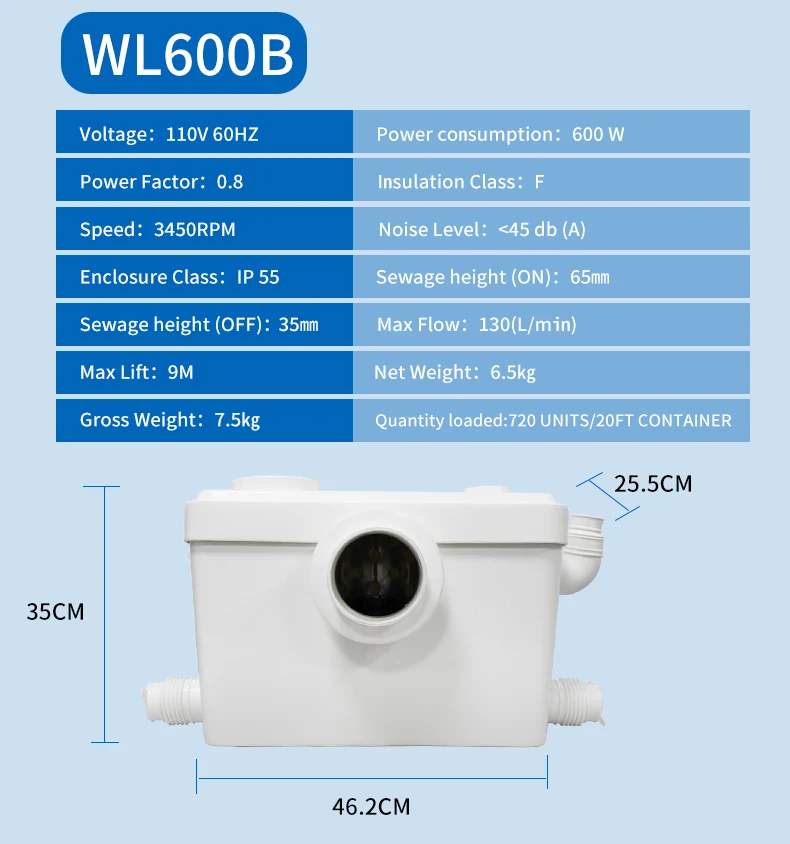 600W Macerator Sewerage Pump Waste Water Marine Toilet Bathroom Pump