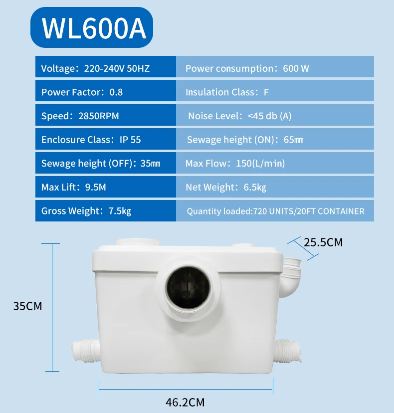 300W Macerator Sewerage Pump Waste Sewage Water Disposal Marine Basement Basin Clean