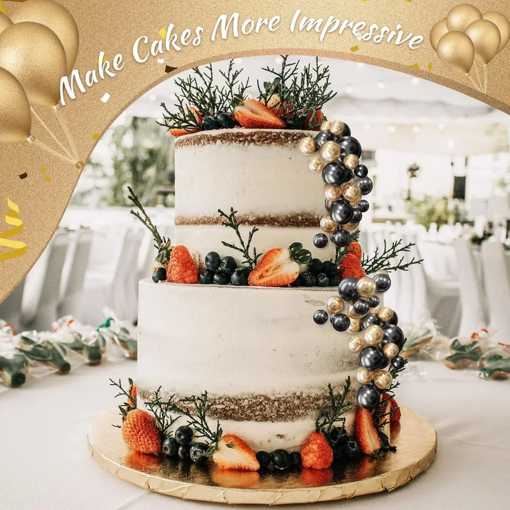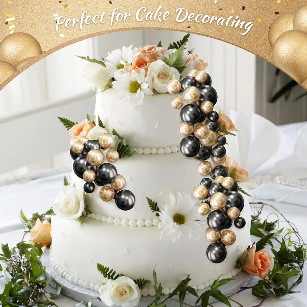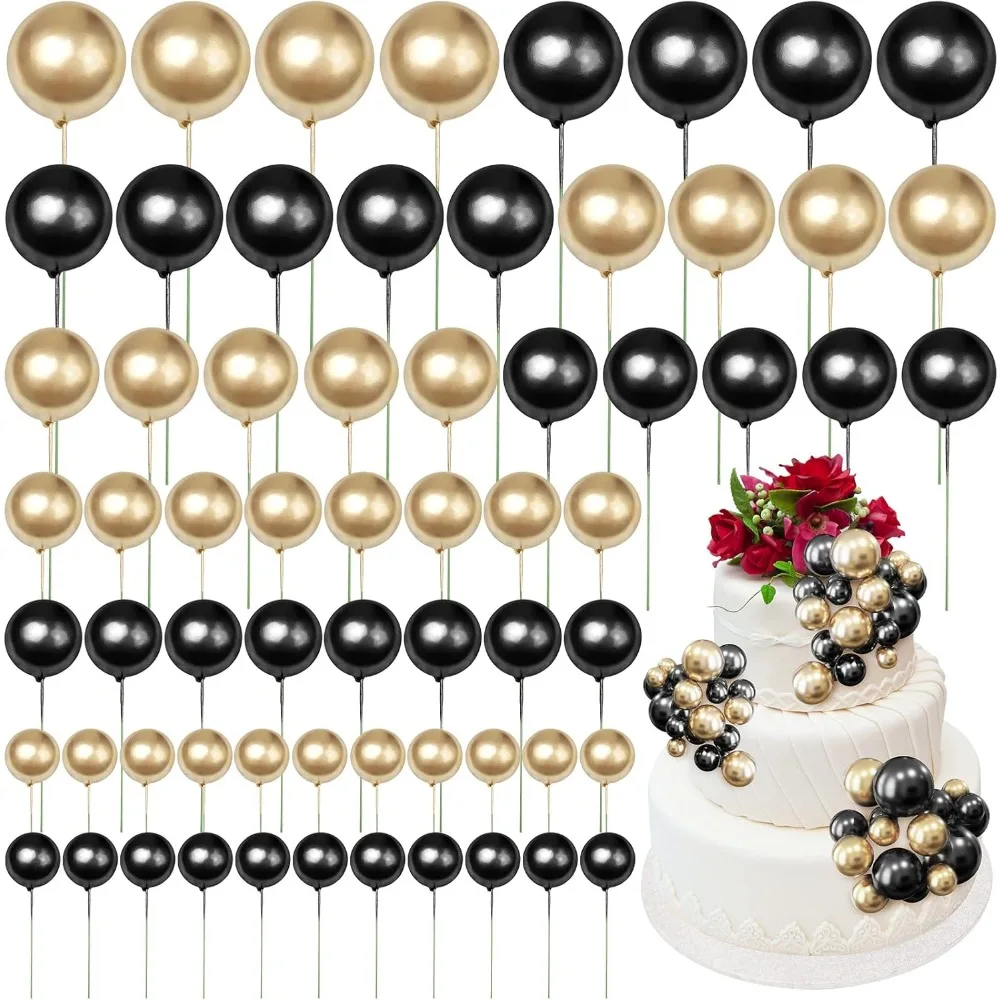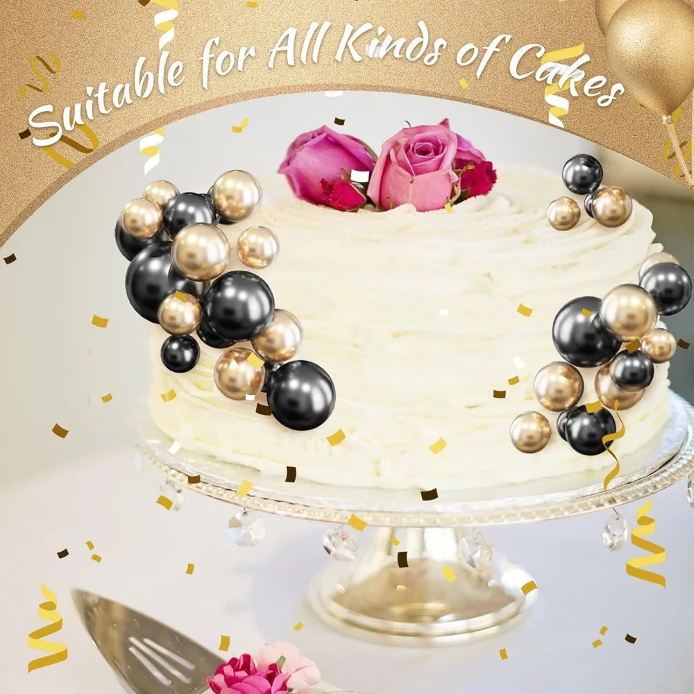 120pcs Black Gold Cake Toppers Balls Decoration Cake Baking Decoration Ball for Birthday Party Wedding Anniversary Baby Shower