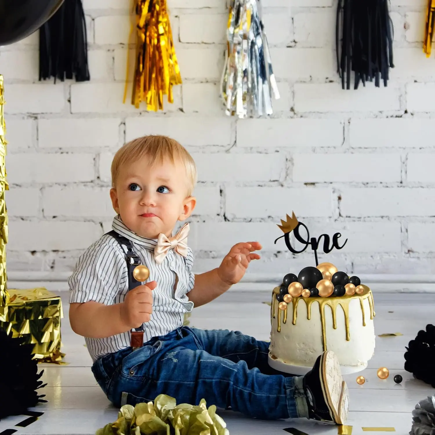 120 Gold and Black Ball Cake Toppers. They can be used to decorate your cake to make it more attractive and impressive. They will be a perfect addition to your cake, cupcake, or other desserts. These ball cake toppers will offer you happiness for Birthday, Wedding, Baby Shower, Christmas, Valentine’s Day, and other occasions.