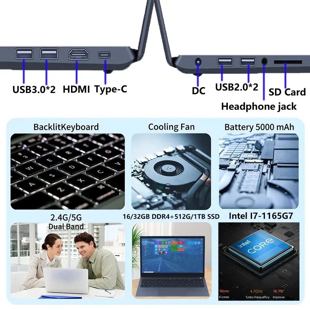 2023 Gaming Laptops Discrete Graphics Geforce MX450 Office Notebooks 11th Gen Intel I7-1165G7 32GB RAM +2TB M.2 Type-C DP Metal