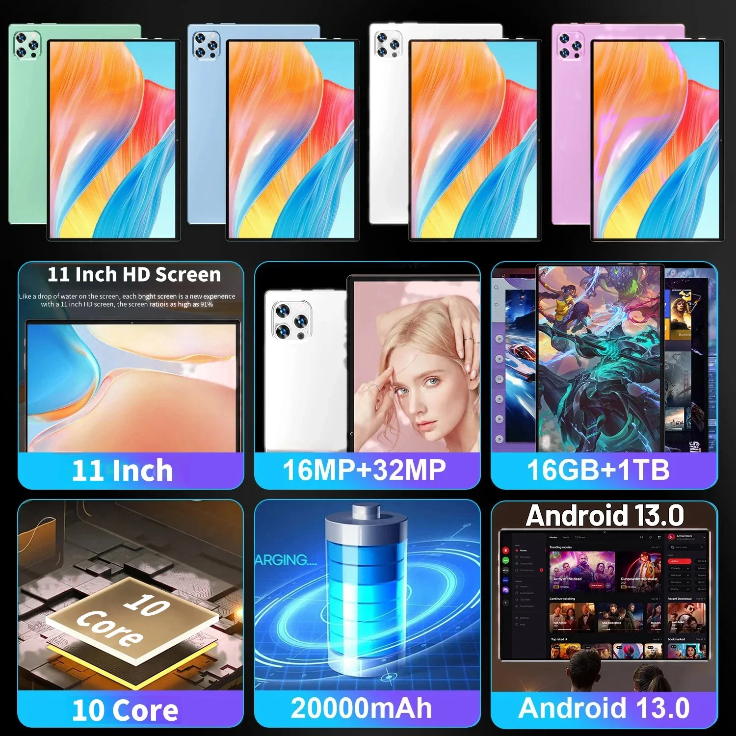 2024 Global Version NEW 11 Inch Original Tablet Android 13 16GB 1024GB 20000mAh Bluetooth 5G Dual SIM Phonecall WIFI Tablets PC