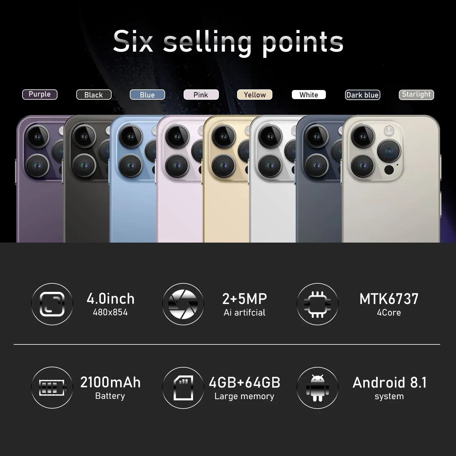 2024 New I15 Mini Smartphone 4.0 HD Second Screen Cellphone 4G Android 8.1 Mobile Phone 4GB+64GB Dual Sim Celulares 5MP 21000Mah