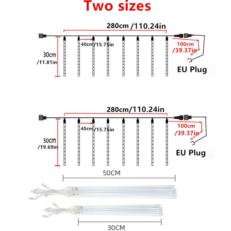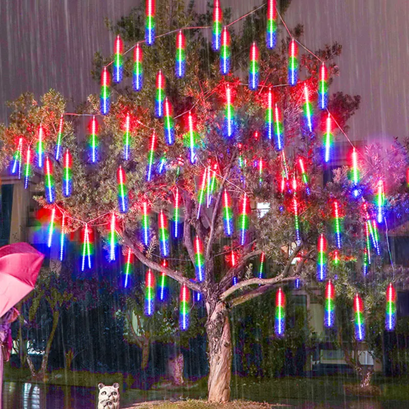 30/50cm 8 Tube EU Plug LED Meteor Shower Light Fairy String For Outdoor Holiday Christmas Decoration Tree Decor Garden Decor