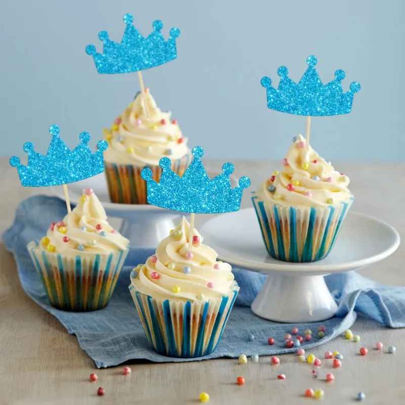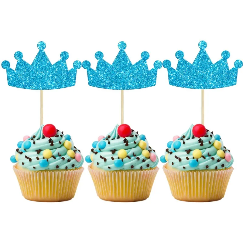 60PCS Glitter Crown Cupcake Toppers Gold Blue Cake Decoration Pick Birthday Wedding Party Supplies DIY Baking Accessories