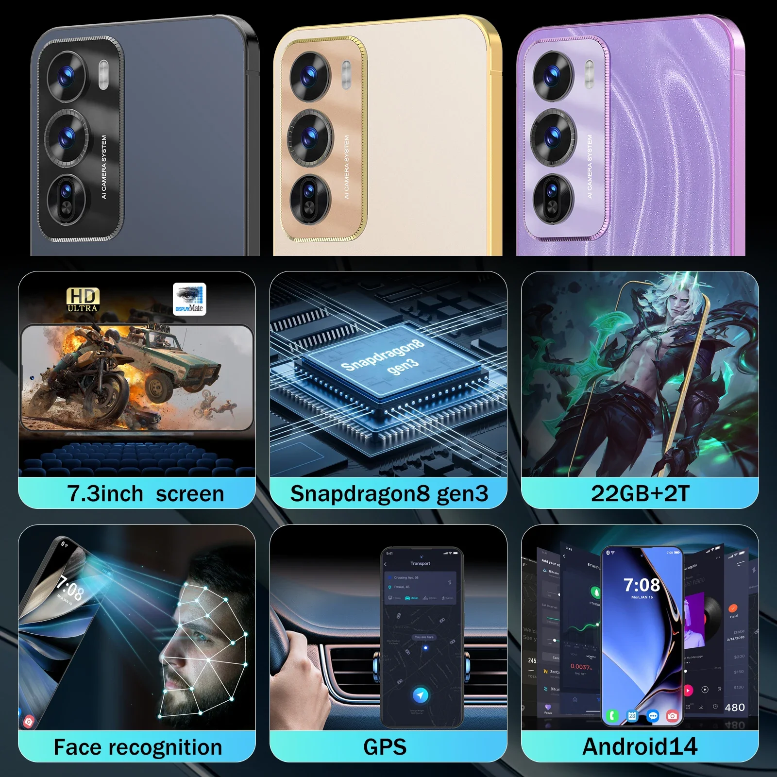 7.3 inch S24 Ultra Android Smartphones 22GB+2TB 8800mAh 10 Core Cell Phones 5G WiFi Dual SIM Card Mobile Phones Global celulares