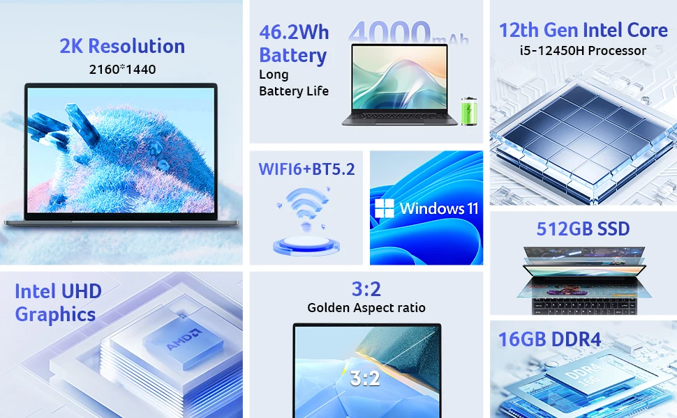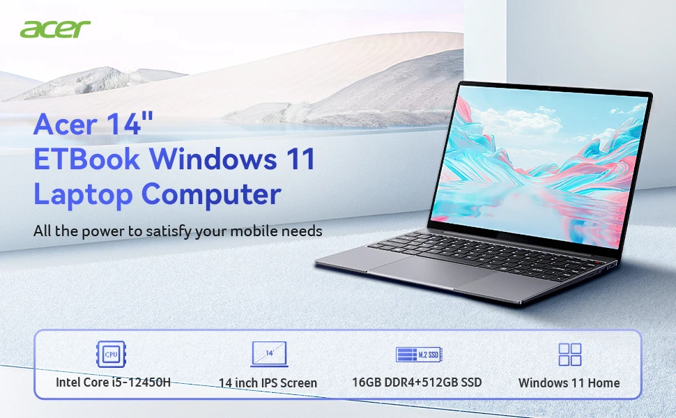 acer Gadget Laptops e10 ACER ETBook Gaming Laptop 14″ Intel Core i5-12450H 16GB LPDDR4 512GB SSD 2160*1440 Screen Win 11 Laptops