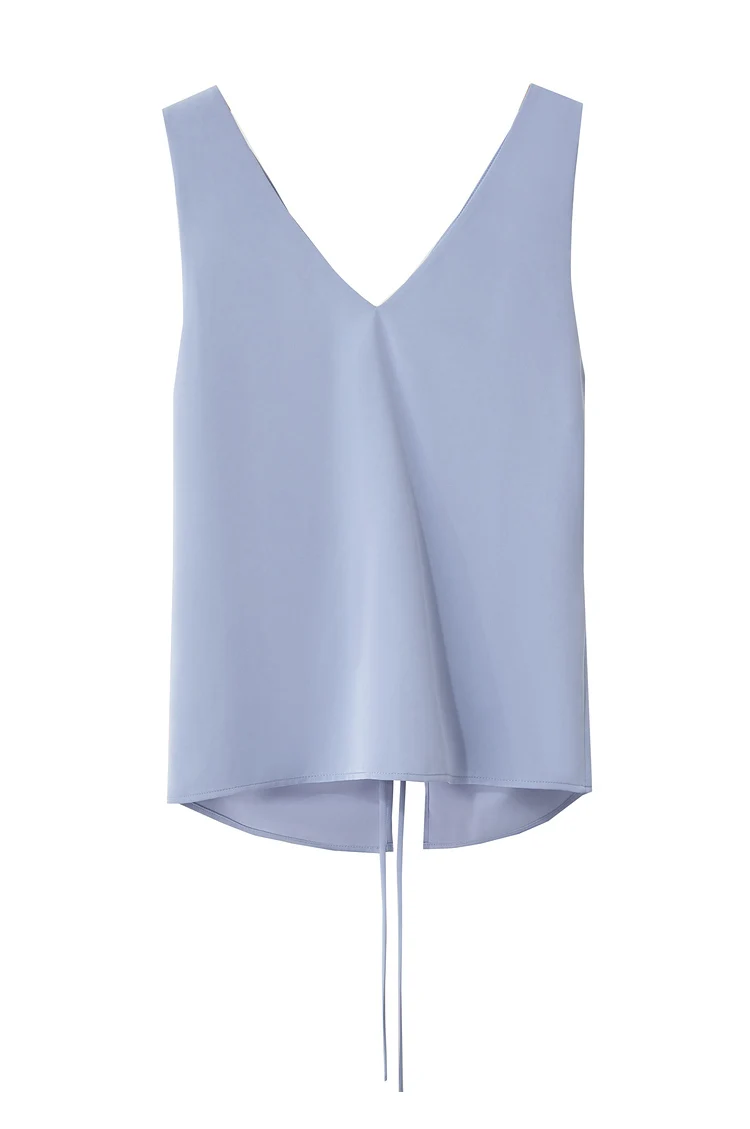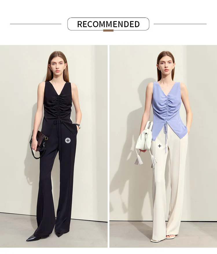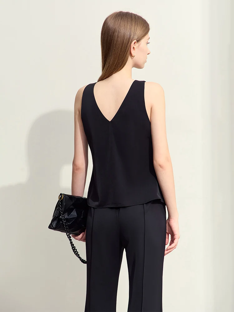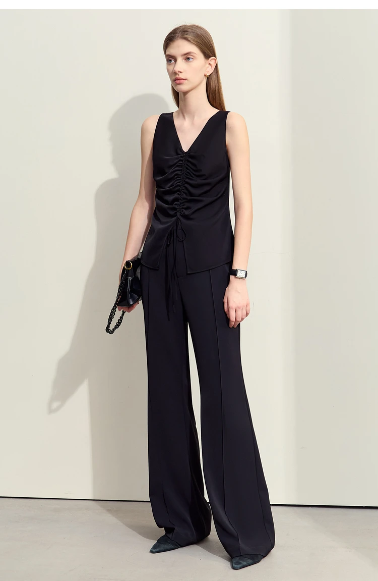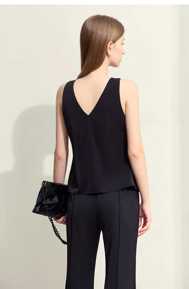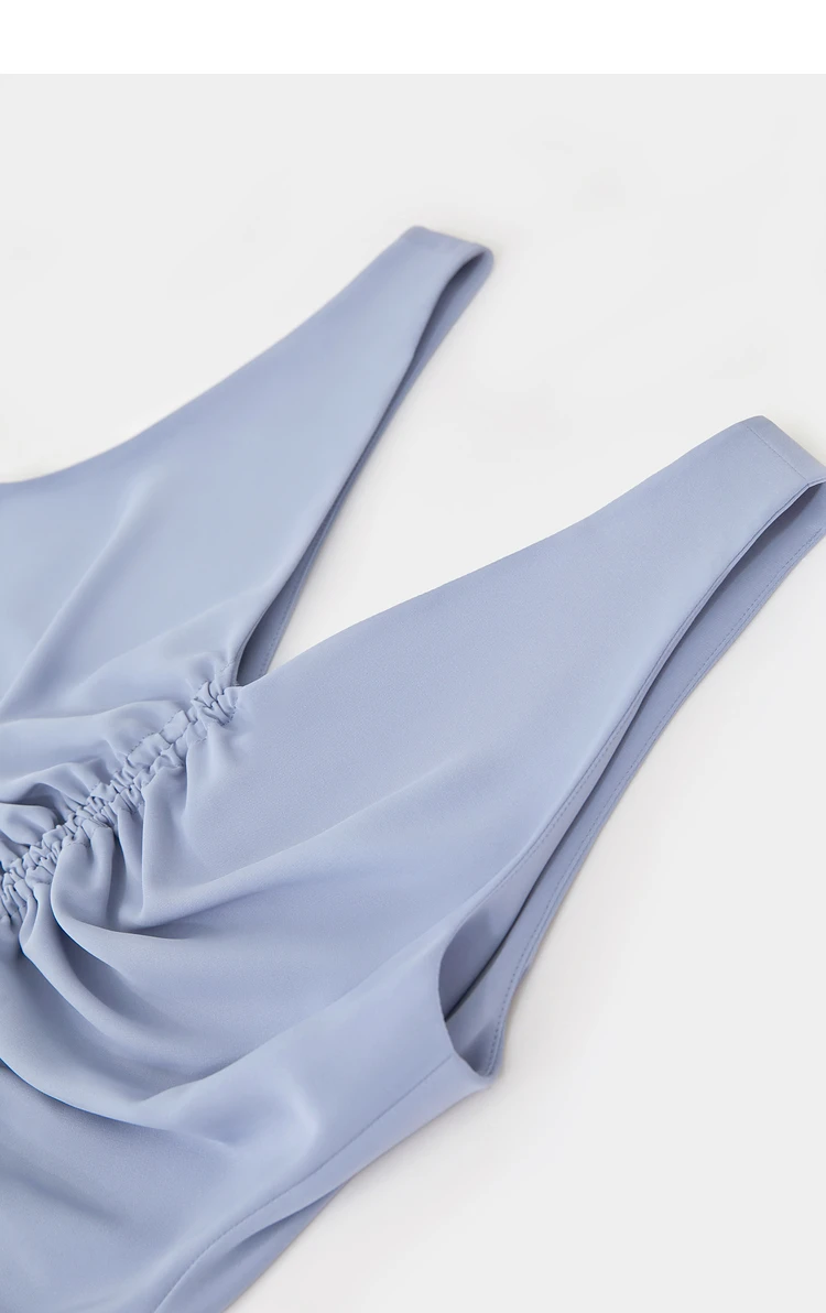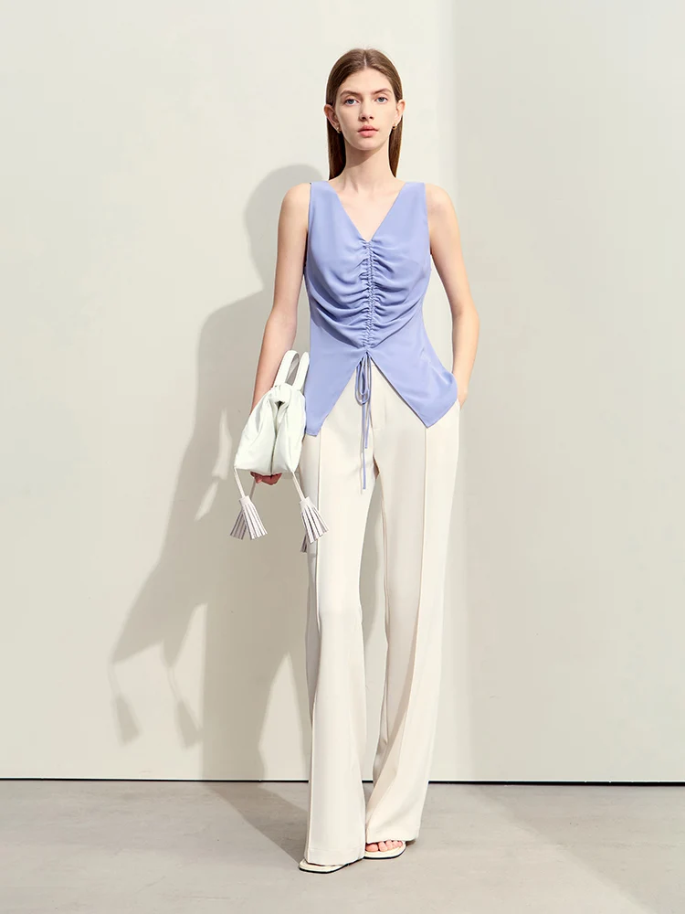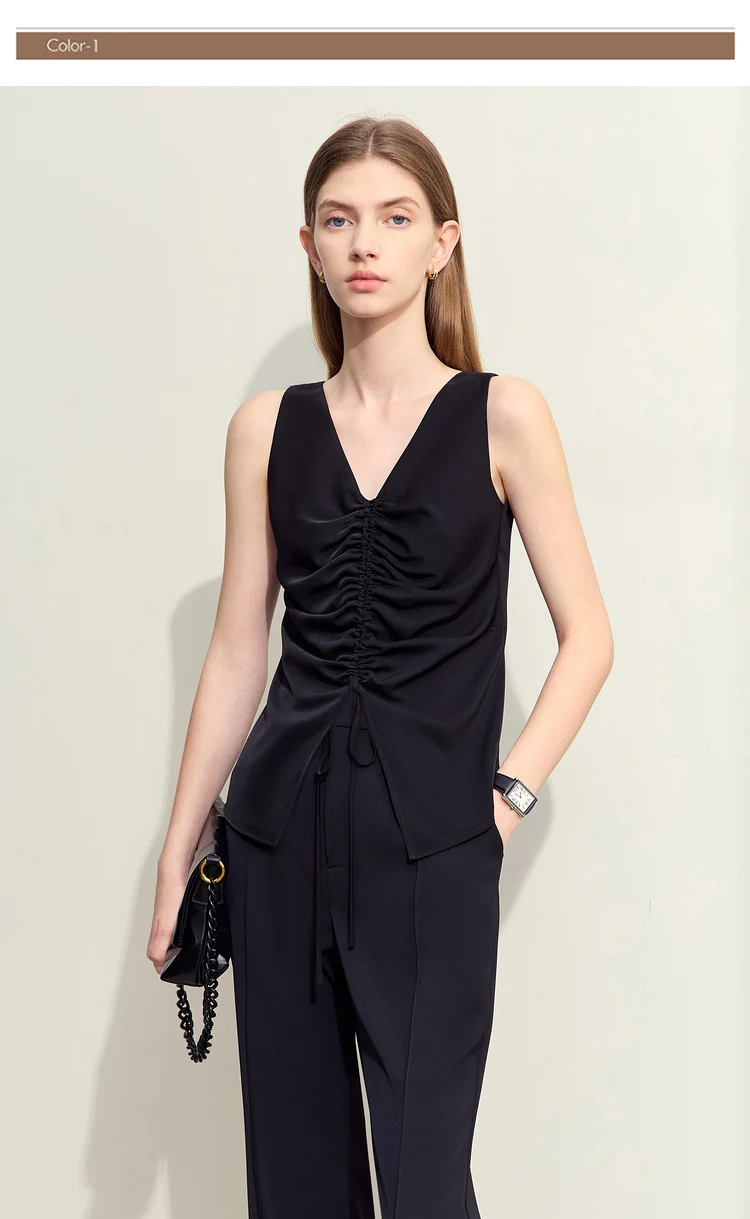 Amii Minimalism 2024 Women Tanks & Camis Summer New Commuter V-neck Draw-pleated Strap Slim Slit Chiffion Basics Tops 12442215