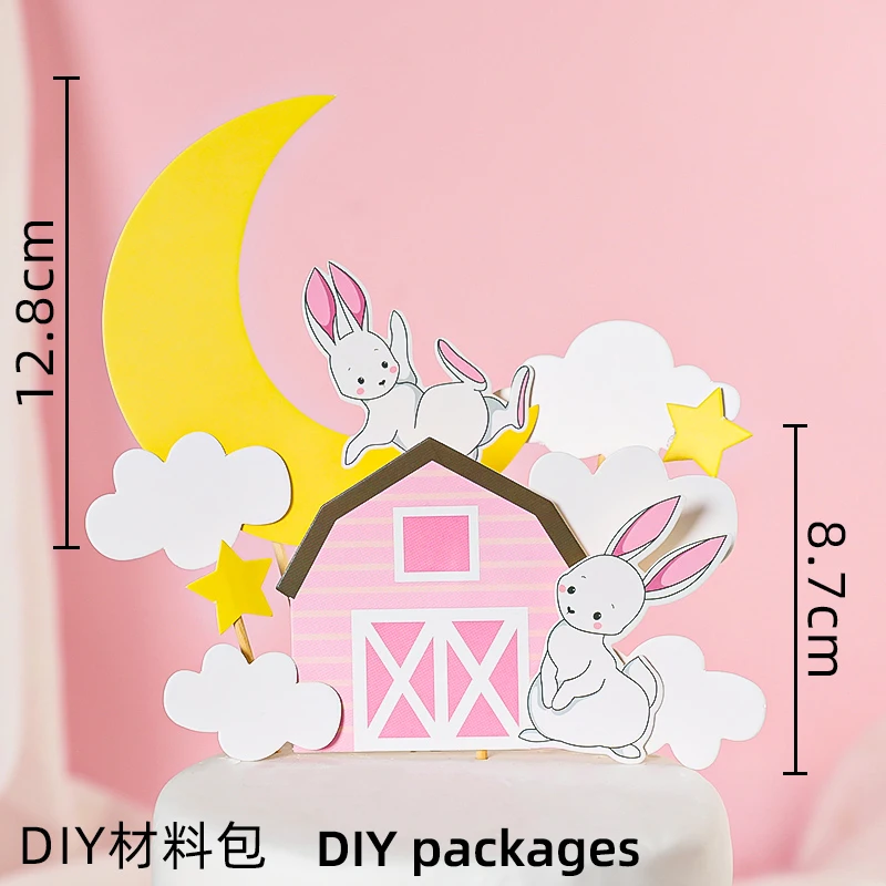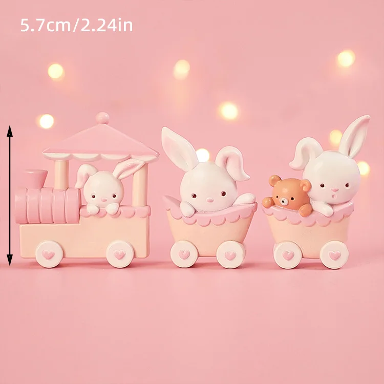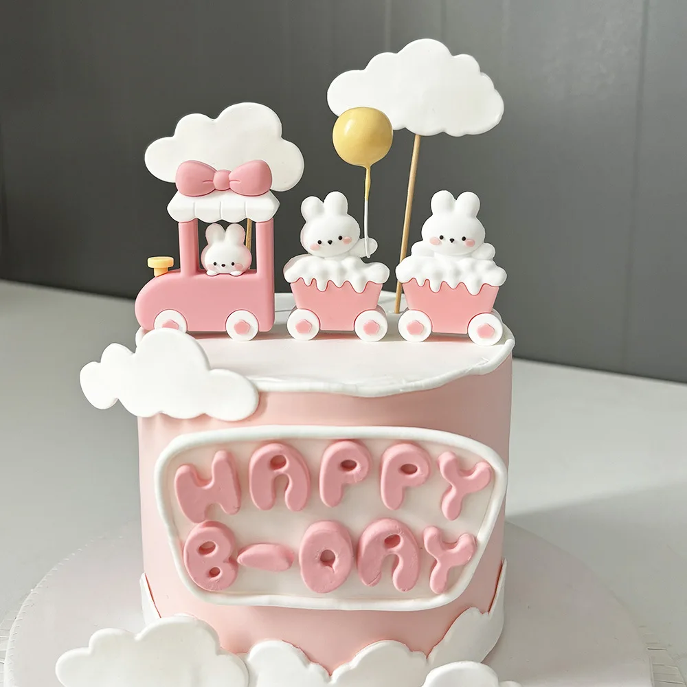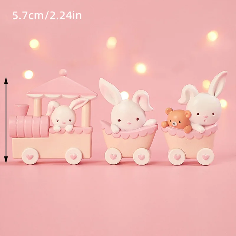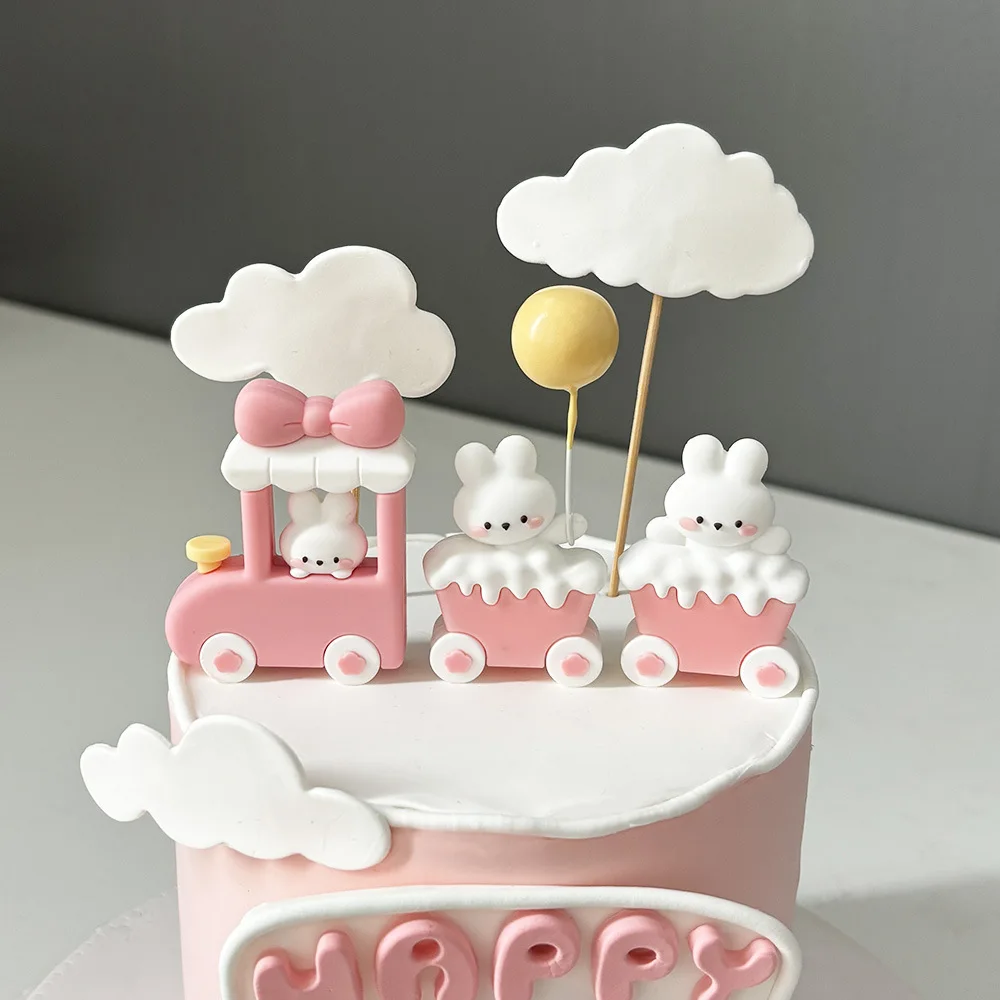 Bunny Train Cake Topper Pink Rabbit Girls Theme Decoration Princess Girl’s Years Old Cake Kids Happy 1st Birthday Party Supplies