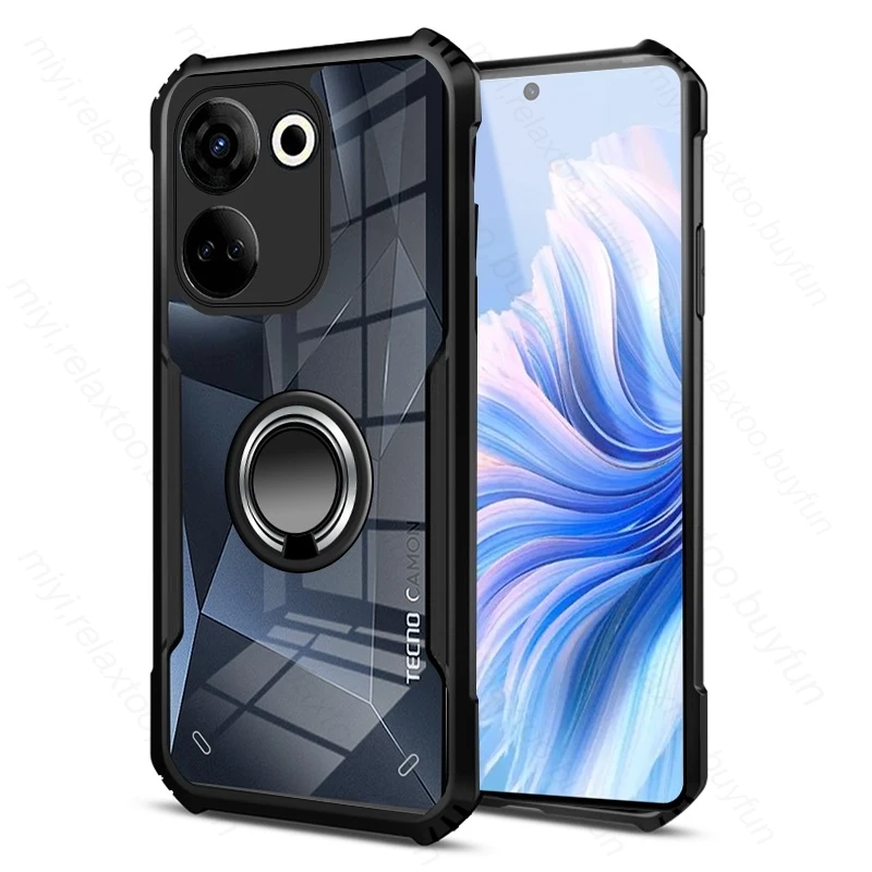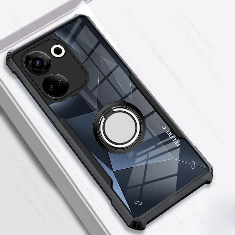 Camon20 4G Case Transparent Acrylic Armor Back Cover For Tecno Camon 20/20 Pro 4G CK7n 6.67″ Magnet Ring Holder Shockproof Coque