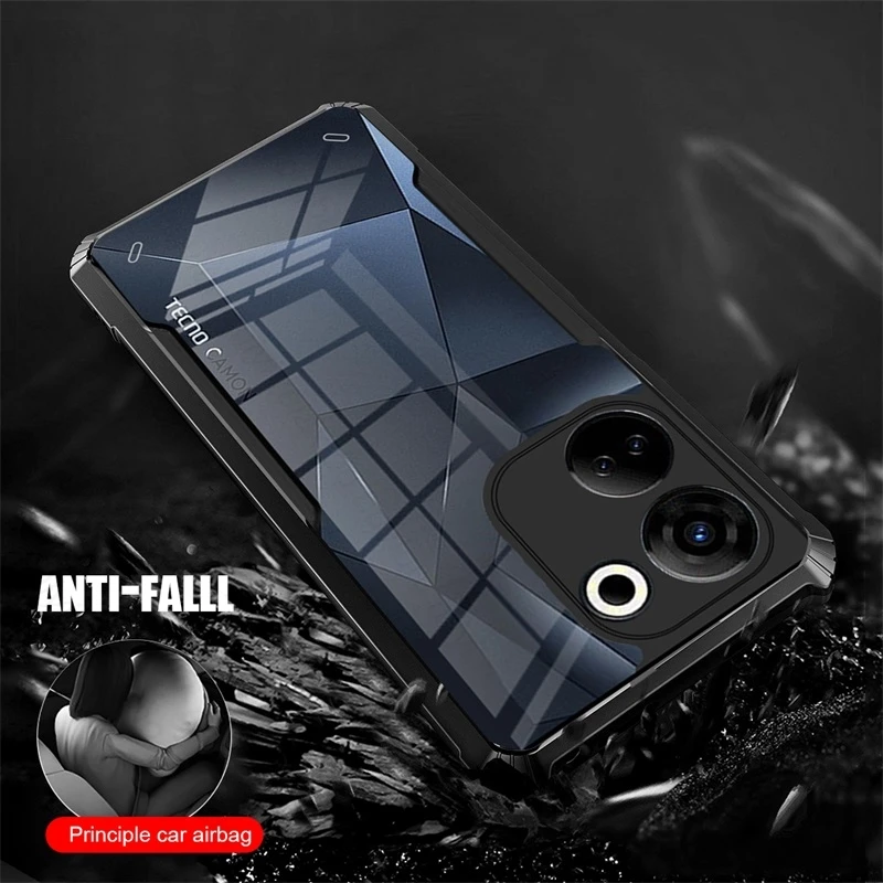Camon20 4G Case Transparent Acrylic Armor Back Cover For Tecno Camon 20/20 Pro 4G CK7n 6.67" Magnet Ring Holder Shockproof Coque