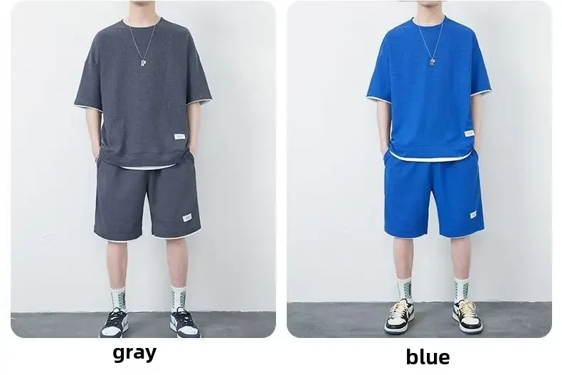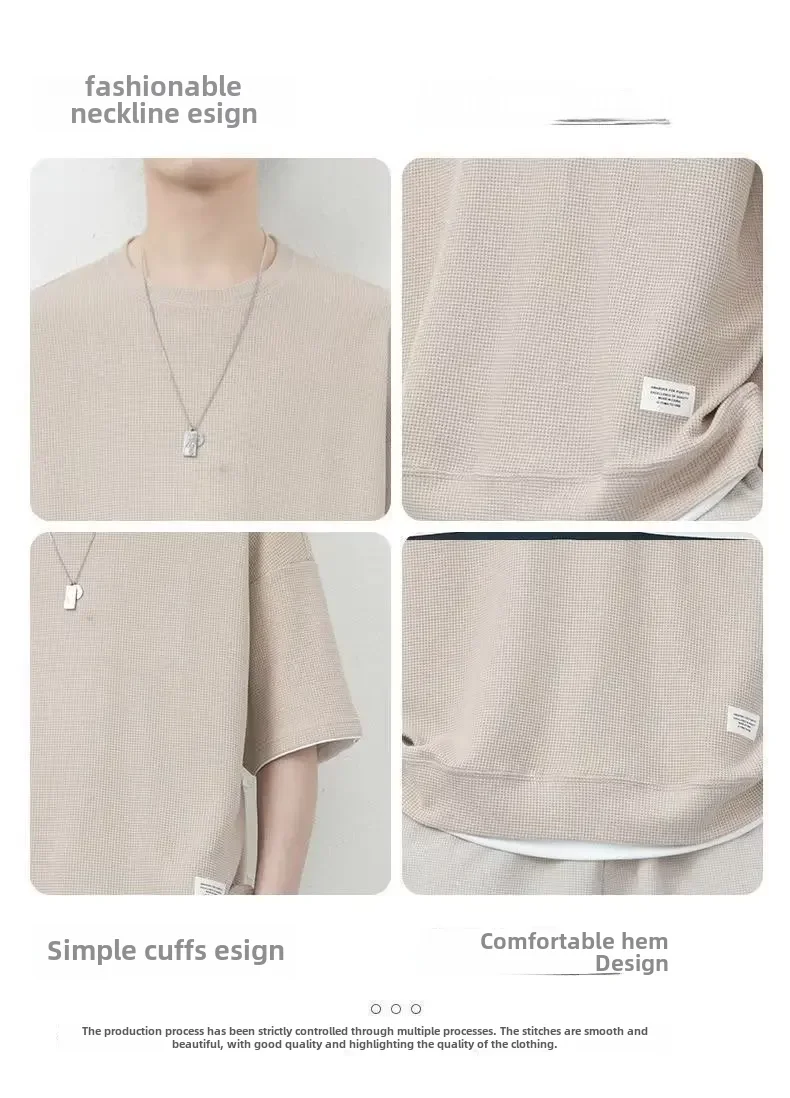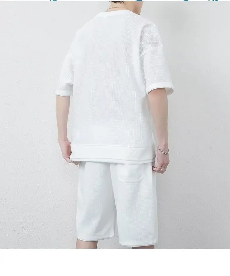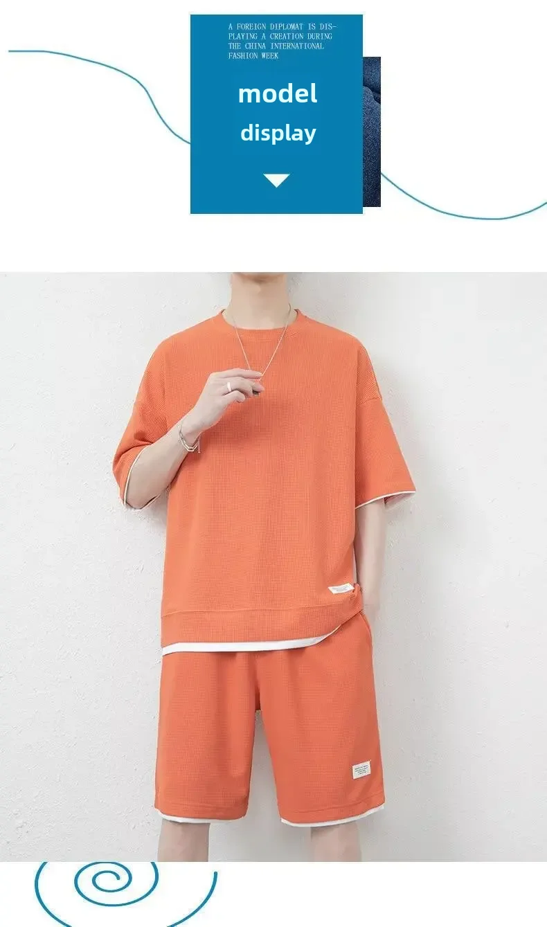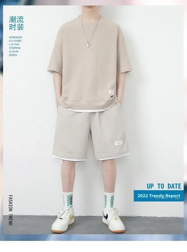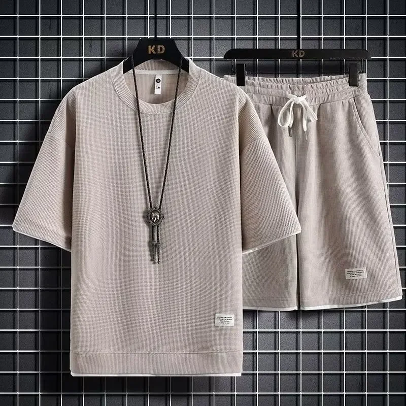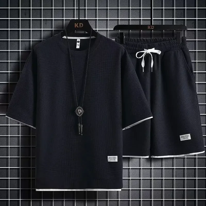 Casual Sports Suit For Men Summer Ice Cool Trendy Loose-fit Checked Short Sleeve Shorts Stylish Matching Set Clothes