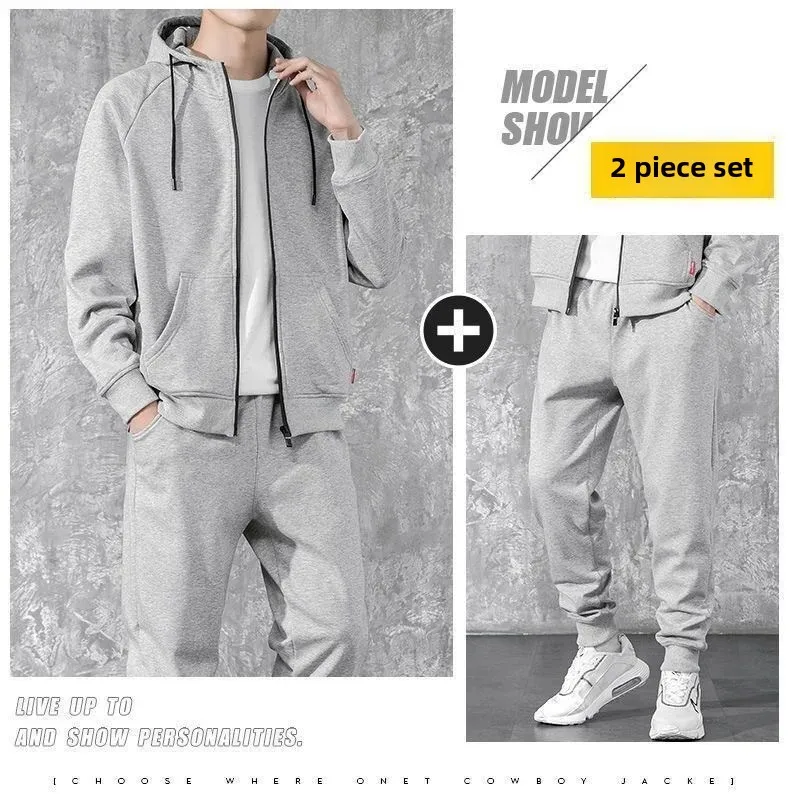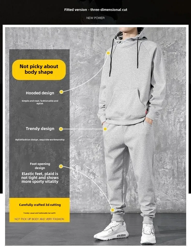 Casual Sports Suit Men’s Autumn/winter Fleece-lined Thickened Korean Trendy Sweatshirt Single Piece Set Men’s Wear