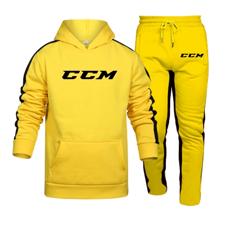 CCM 2 Pieces Set Hoodie Men Fashion 2023 Fleece Sweatshirt+Sweatpants Suit Hoodies Sportswear Men’s Sets Clothing