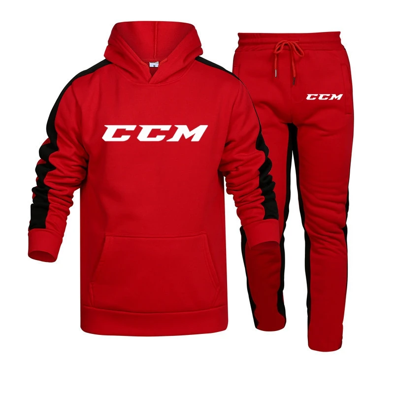 CCM 2 Pieces Set Hoodie Men Fashion 2023 Fleece Sweatshirt+Sweatpants Suit Hoodies Sportswear Men’s Sets Clothing