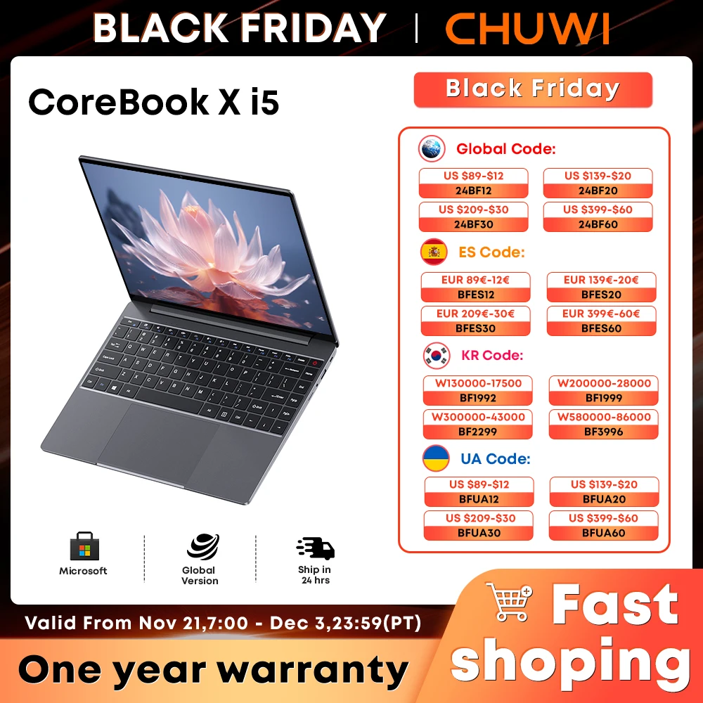 Brand: CHUWI Model: CoreBook X OS: Windows 11 OS CPU: Intel Core i5 12450H Core: Dual cores four threads, 14nm, 1.2 GHz-4.4GHz GPU: Intel UHD Graphics for 10th Gen Intel Processors, 300-1.0GHz Battery: 49.09Wh (11.55V/4000mAh) |