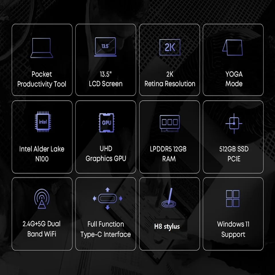 Brand: CHUWI Model: FreeBook OS: Pre-installed Windows 10 OS CPU: Intel N100 /i3-1215U Core: Four cores four threads, 10nm, GPU: Intel UHD Graphics, 350MHz-800MHz |