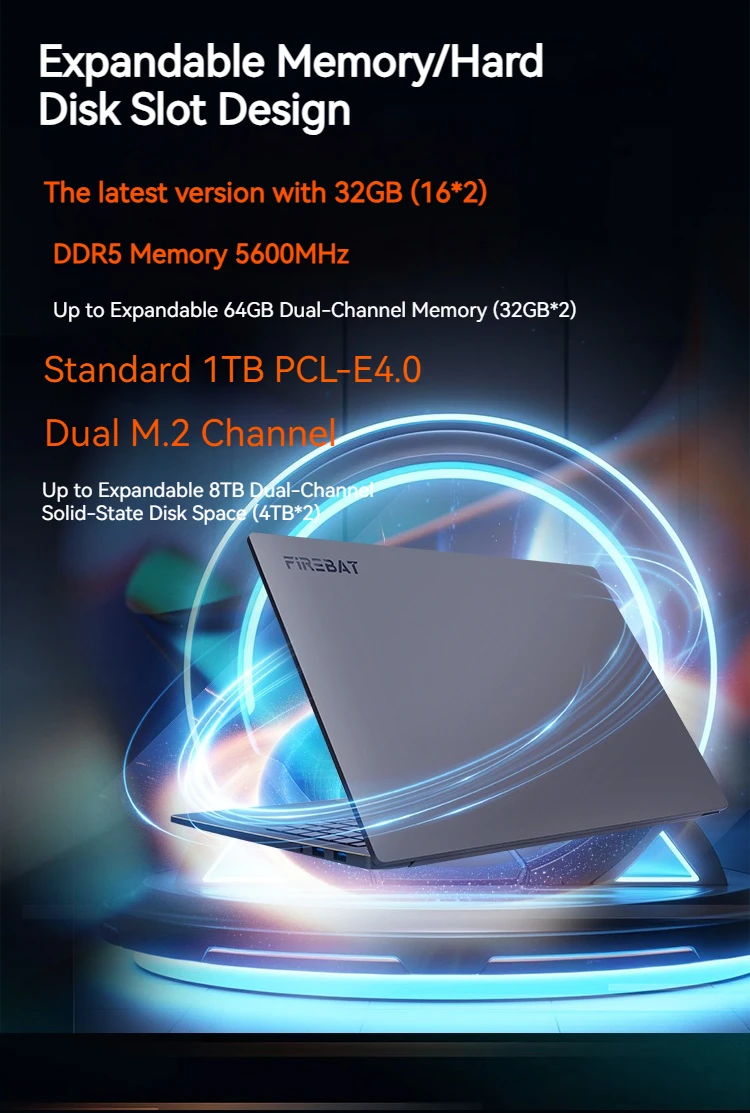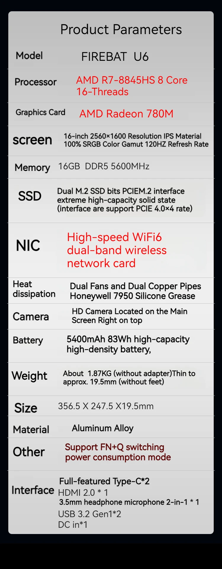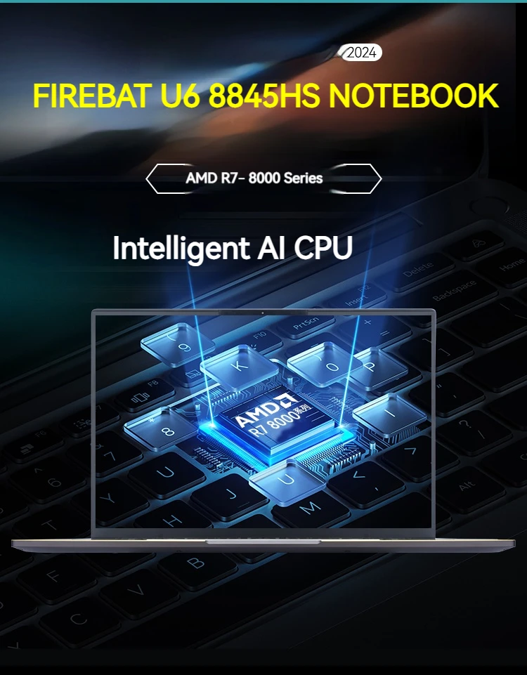 FIREBAT U6 NEW 16 Inch Gaming Laptop Ryzen 7 8845HS 2560*1600 DDR5 Wifi6 BT5.1 120Hz Business Ultra Slim Computer Notebooks