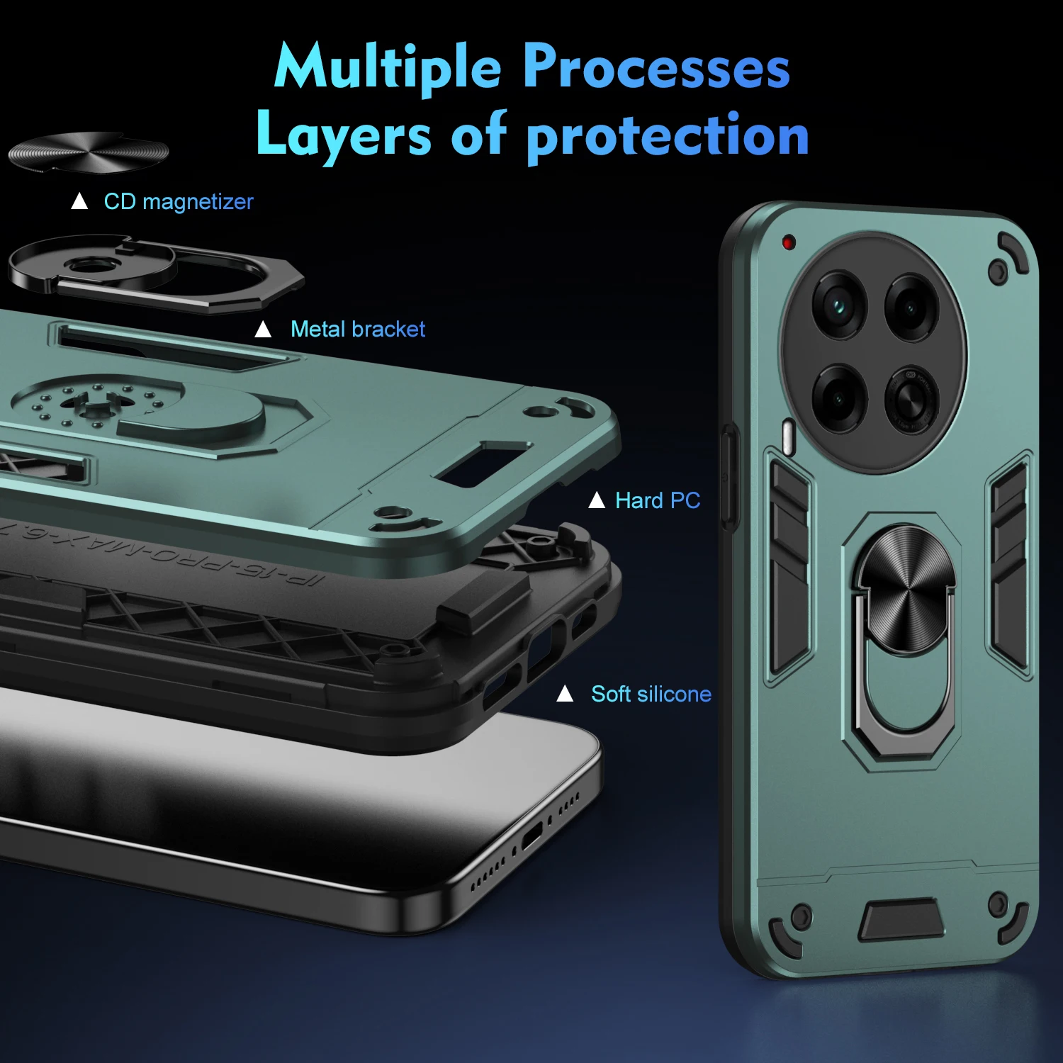 For Tecno Camon 30 4G, Luxury Shockproof Classic Hybrid Armor Magnetic Ring Holder KickStand Hard Stand Case Cover