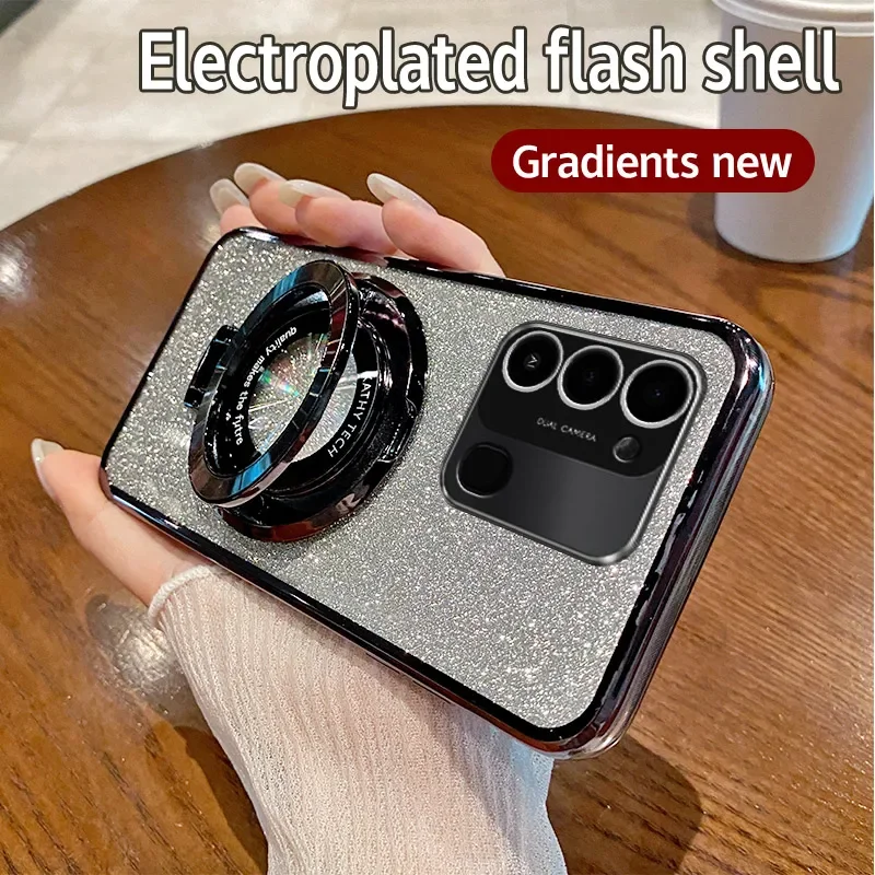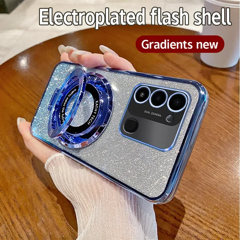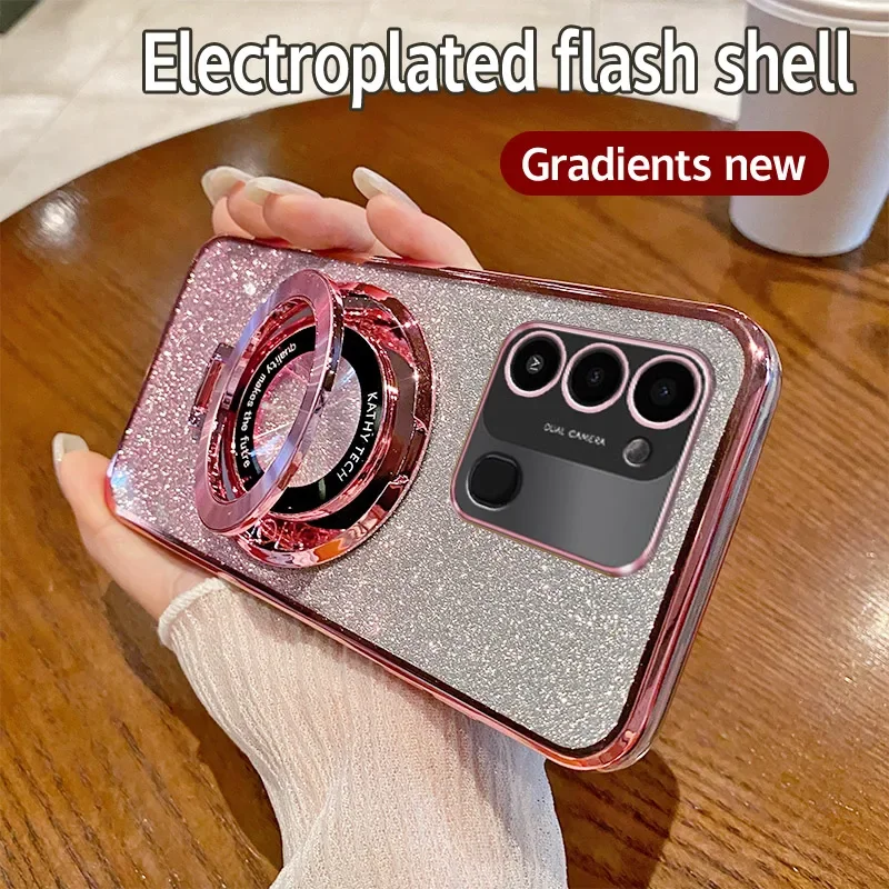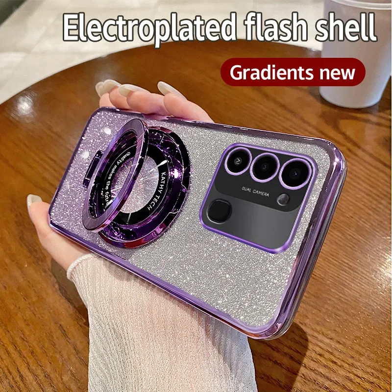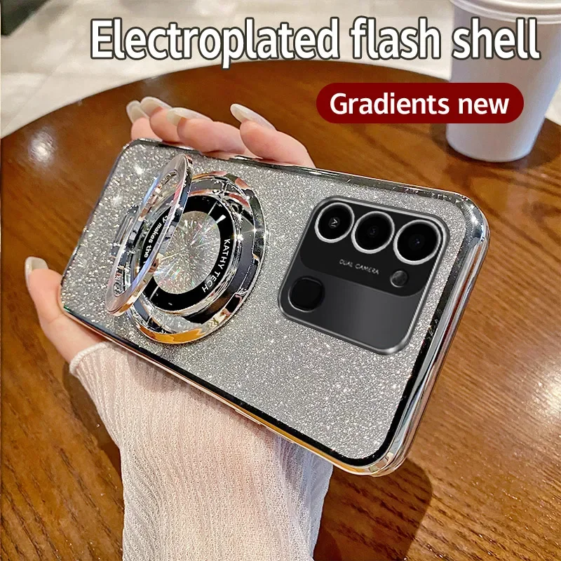 For Tecno Spark 8C Casing Electroplating Soft Glitter TPU Phone Back Cover KG5k KG5j KG5n Phone Case Bracket Magnetic