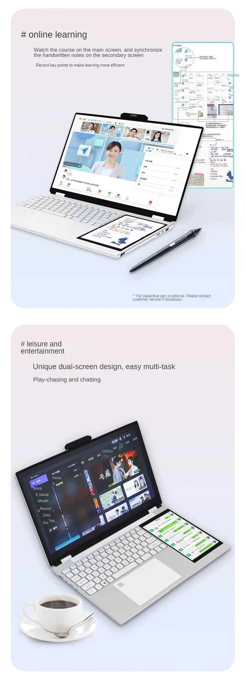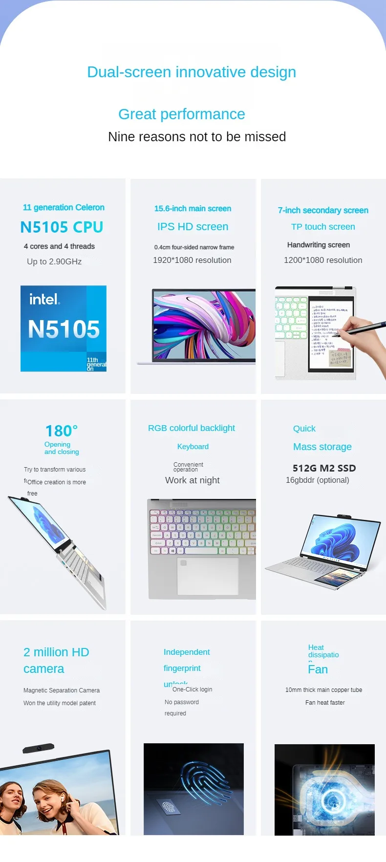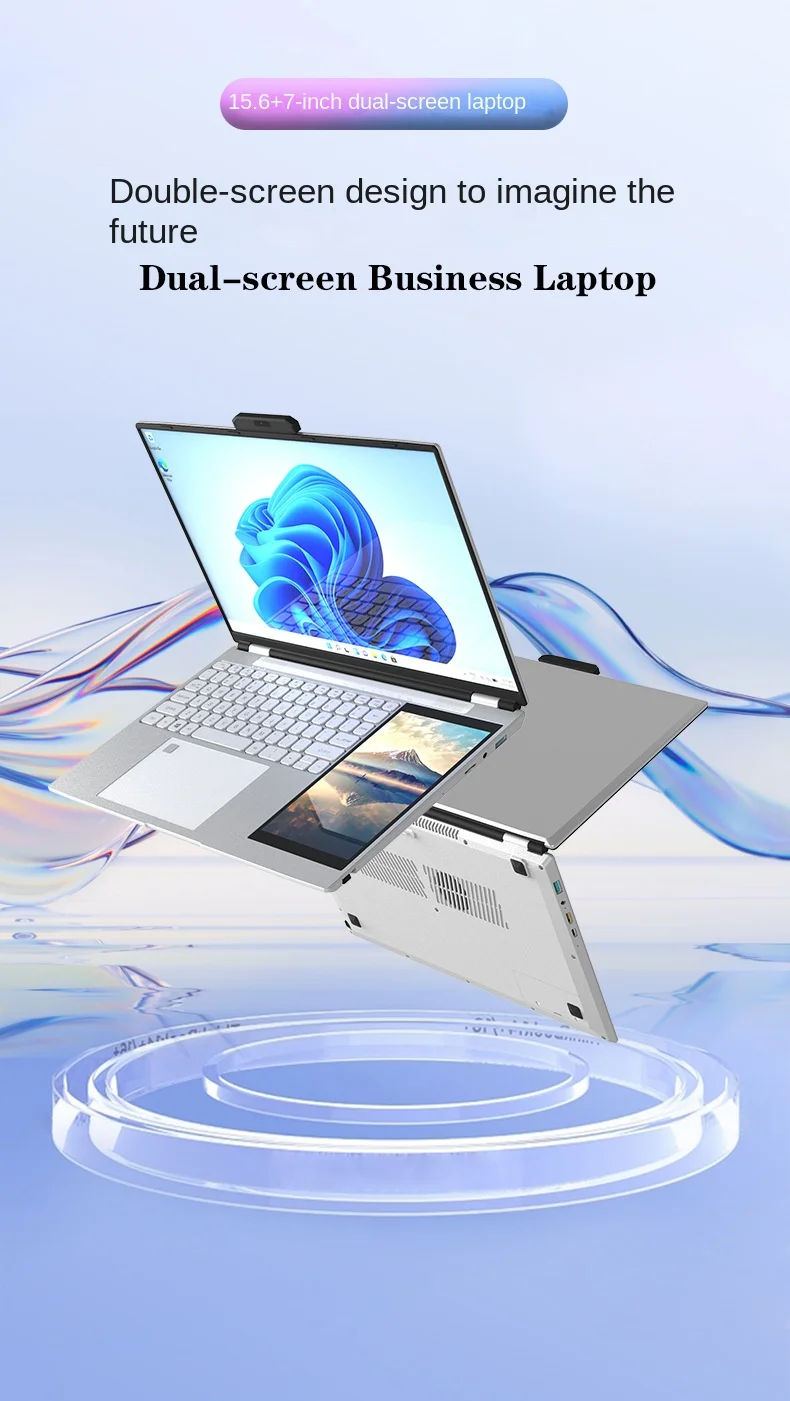 Greatium G56 Dual Screen Touch Laptops Windows 11 Gaming Notebook PC Narrow 15.6Inch +7inch Intel N5105 16Gb RAM+1TB M.2 5G WiFi