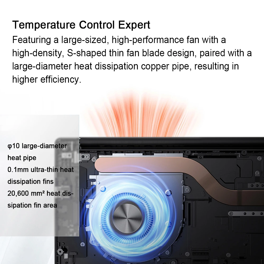 Featuring a large-sized, high-performance fan with a high-density, S-shaped thin fan blade design, paired with a large-diameter heat dissipation copper pipe, the machine’s overall heat dissipation capability is significantly enhanced, resulting in higher efficiency.