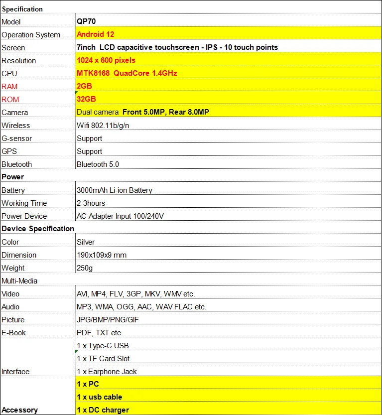 | Bundle | Add 32G TF Card, Add 64G TF Card, Add sleeve case, Tablet Standard |