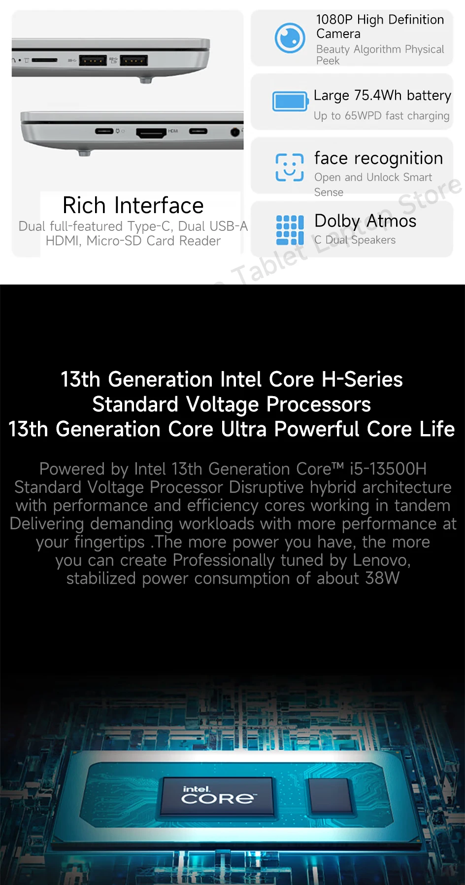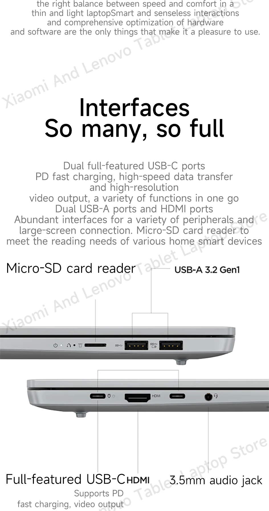 - Port: 1×USB 3.1 Gen1 ,1×USB 3.2 Type C,Card Reader,3.5 mm Combo Audio Jack,HDMI-compatible