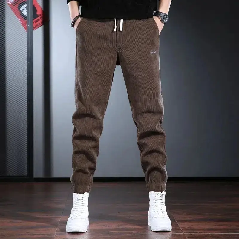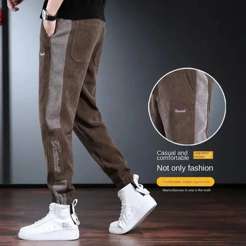 Men’s Winter Fleece Corduroy Wool Oversize Designer Baggy Brushed Joggers Trousers Cargo Plush and Thicken Chenille Pants Men
