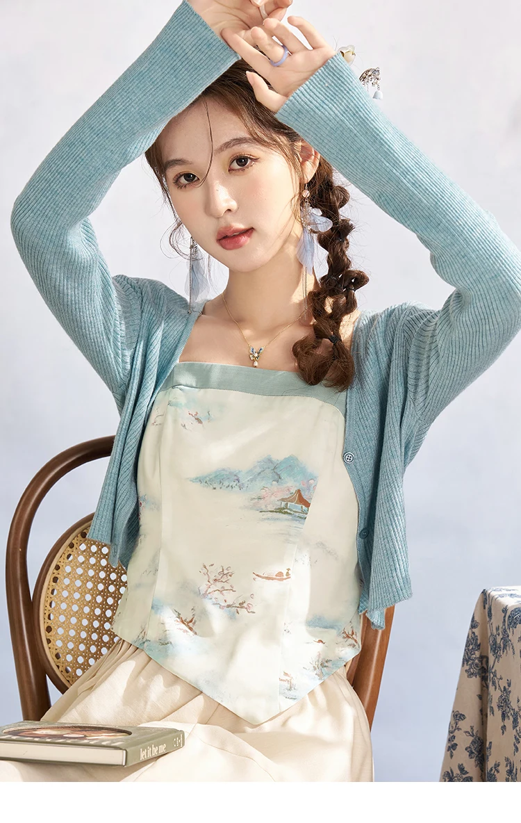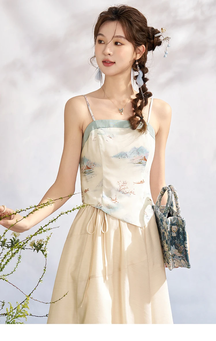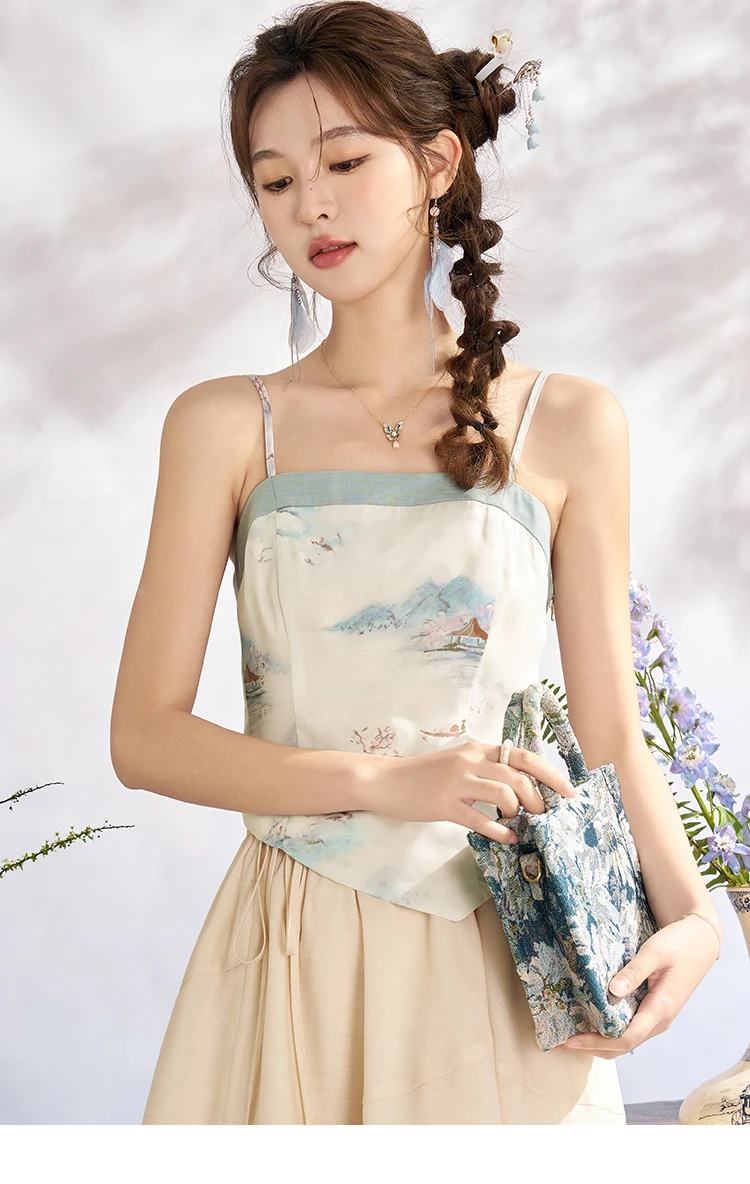 MISHOW Women Chinese Style Print Camisole 2024 Spring Summer Spaghetti Strap Cami Top Women Crop Tube Chic Tops Lady MXD11D0024