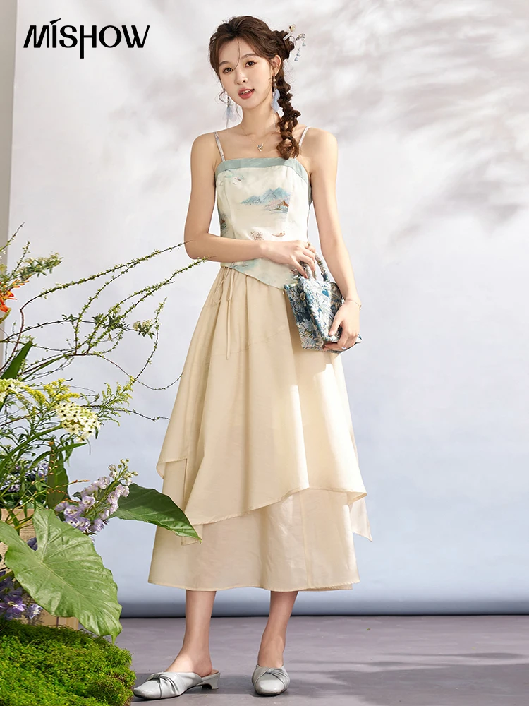 MISHOW Women Chinese Style Print Camisole 2024 Spring Summer Spaghetti Strap Cami Top Women Crop Tube Chic Tops Lady MXD11D0024