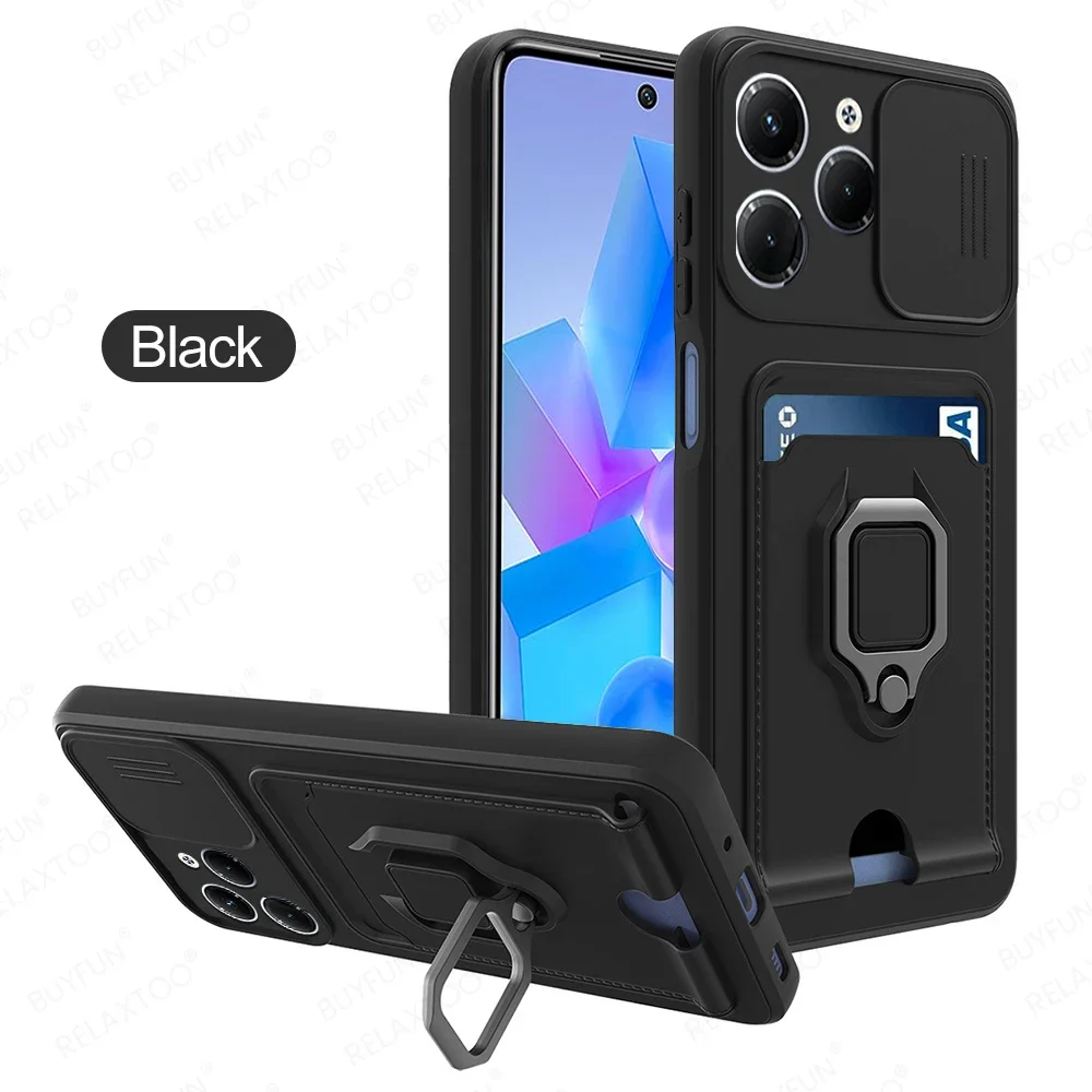 Multifunctional Phone Case For Infinix Hot 40 Pro 4G 40pro 40i with Ring Stand Hot40 Hot40pro Hot40i Push Window Card Slot Cover