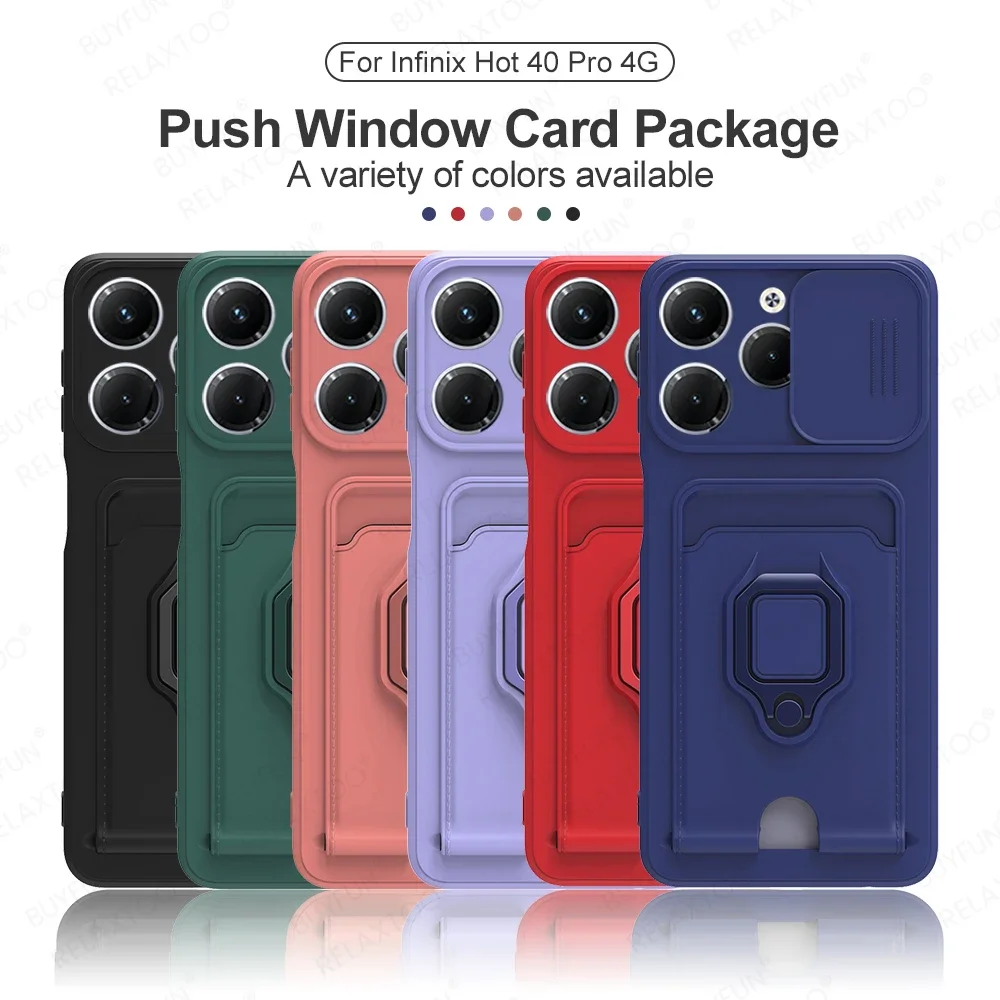 Multifunctional Phone Case For Infinix Hot 40 Pro 4G 40pro 40i with Ring Stand Hot40 Hot40pro Hot40i Push Window Card Slot Cover