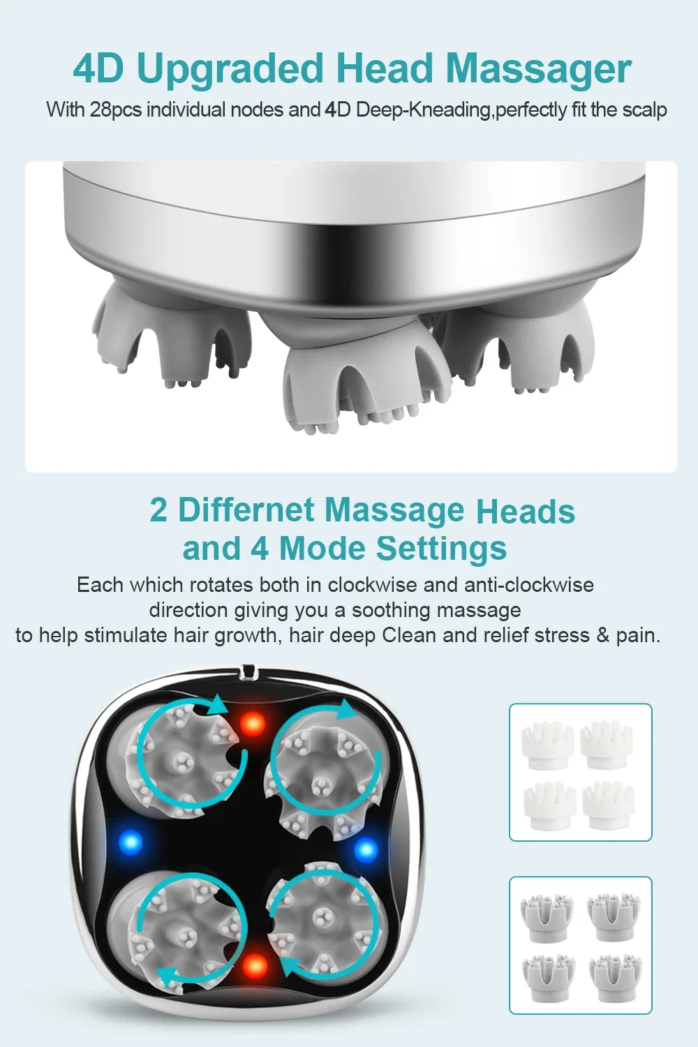 NEW 4D Electric Head Massager Wireless Scalp Promoting Hair Growth Massage Waterproof Body Neck Deep Tissue Massage