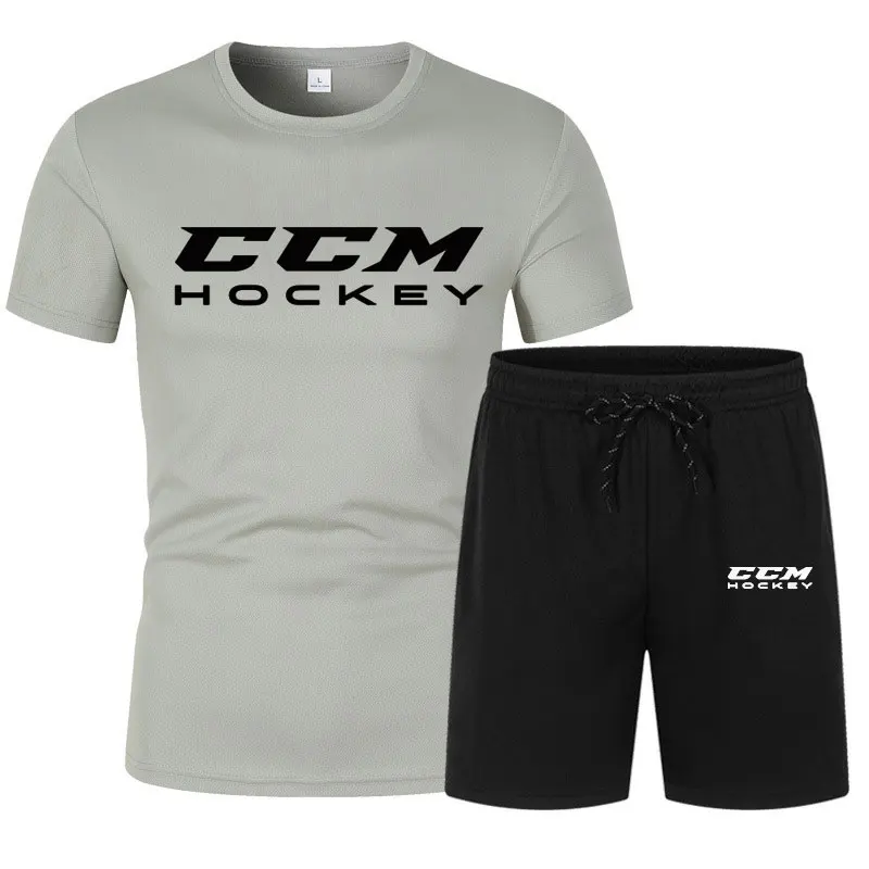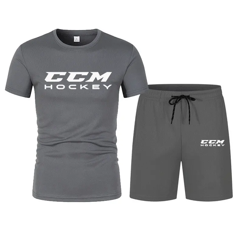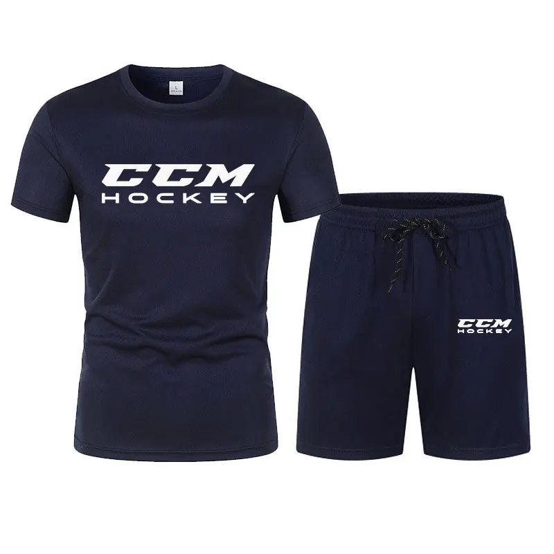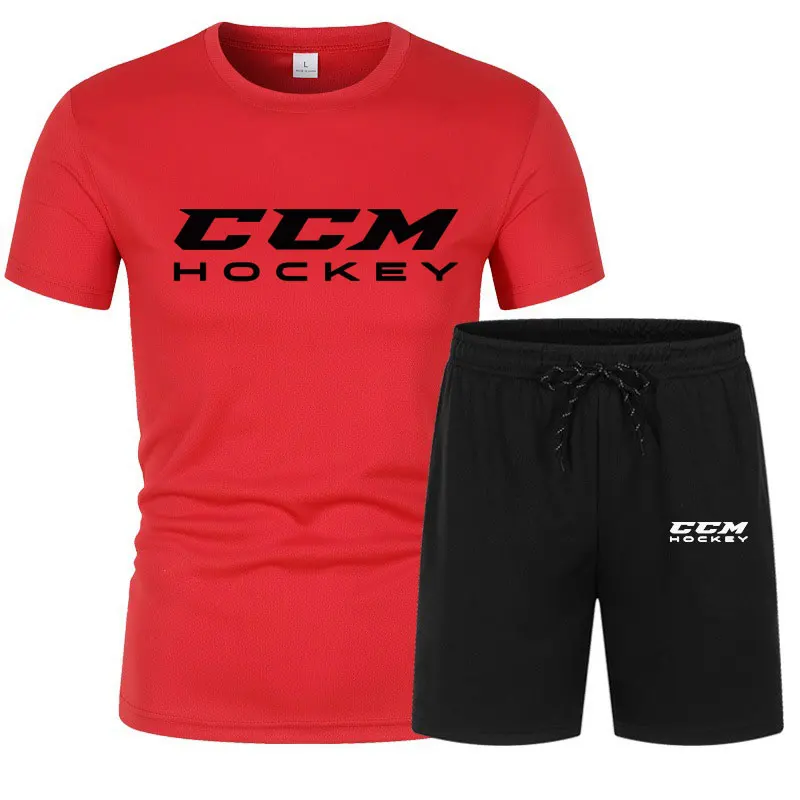 New Summer Tracksuit Men CCM HOCKEY Short Sleeve T-Shirt +Shorts Set Sportswear Men’s Casual Fitness Sports quick-drying Sets