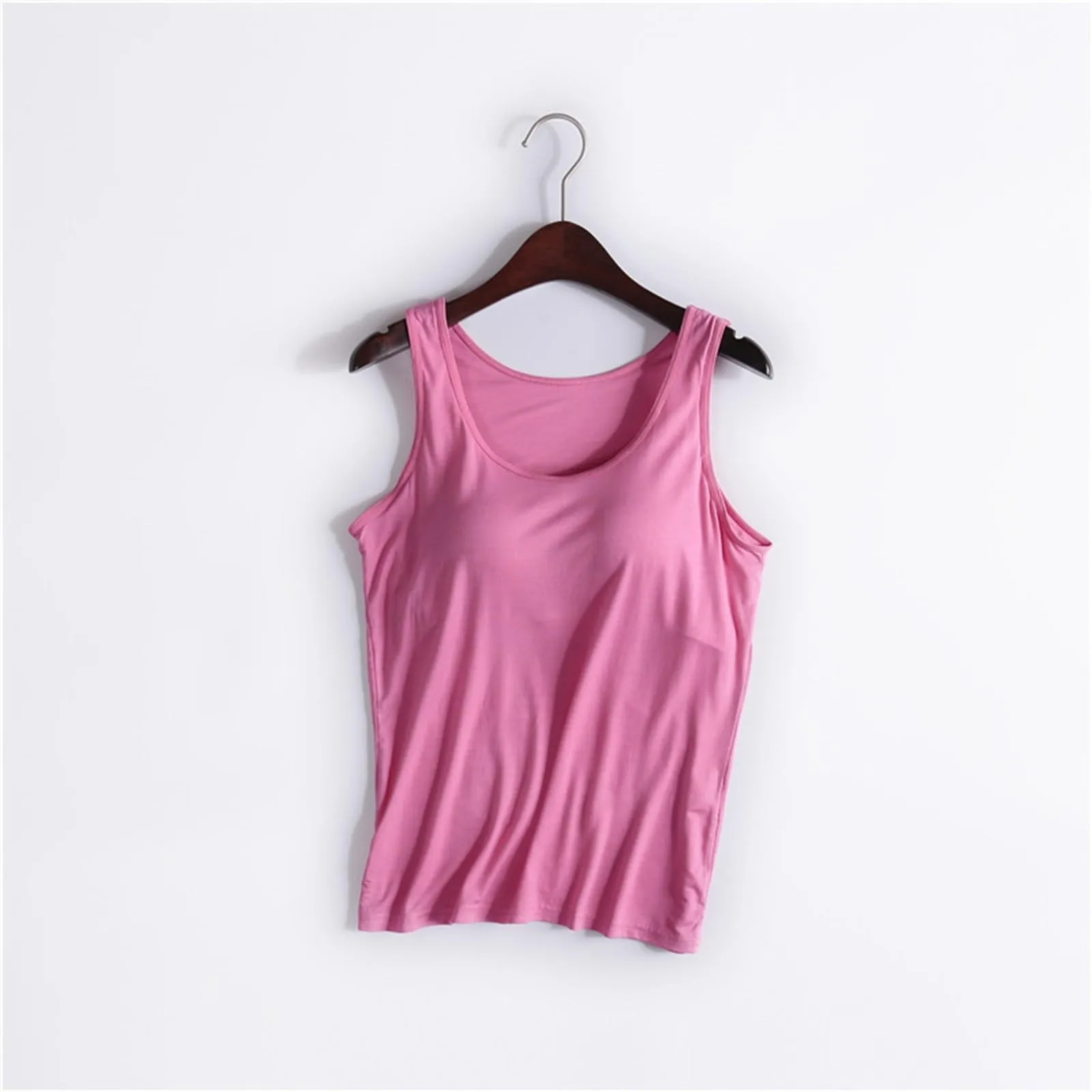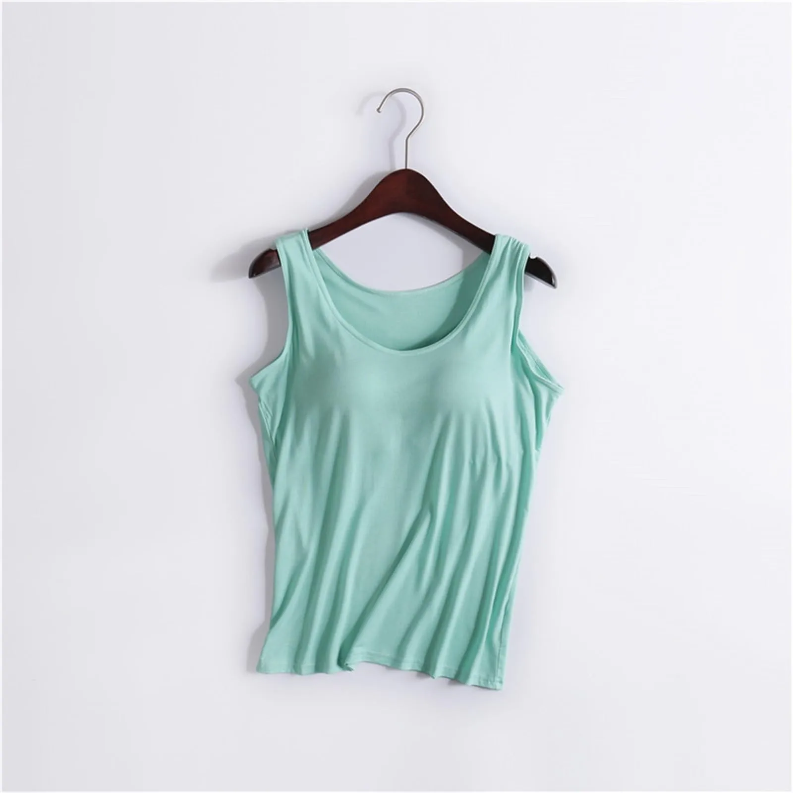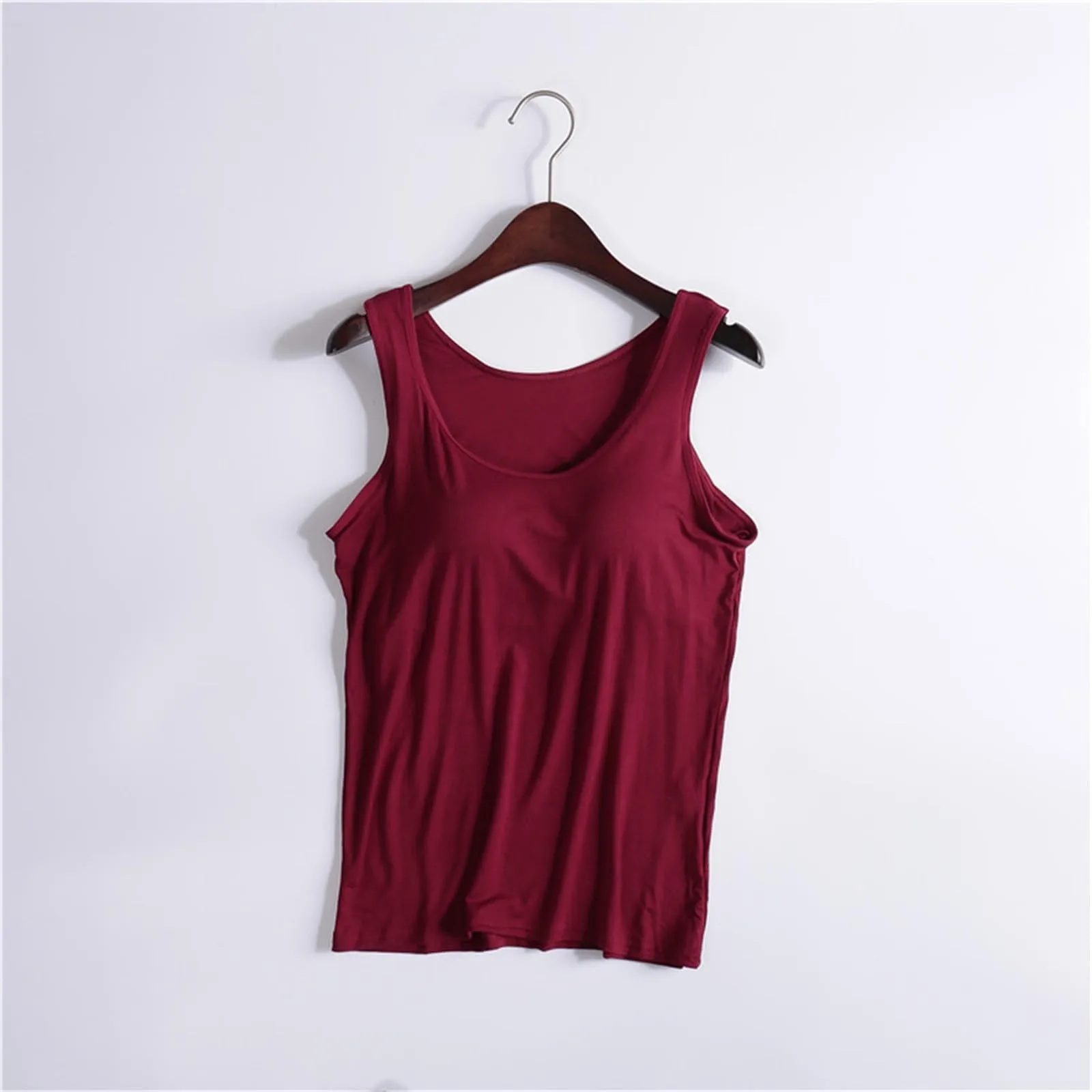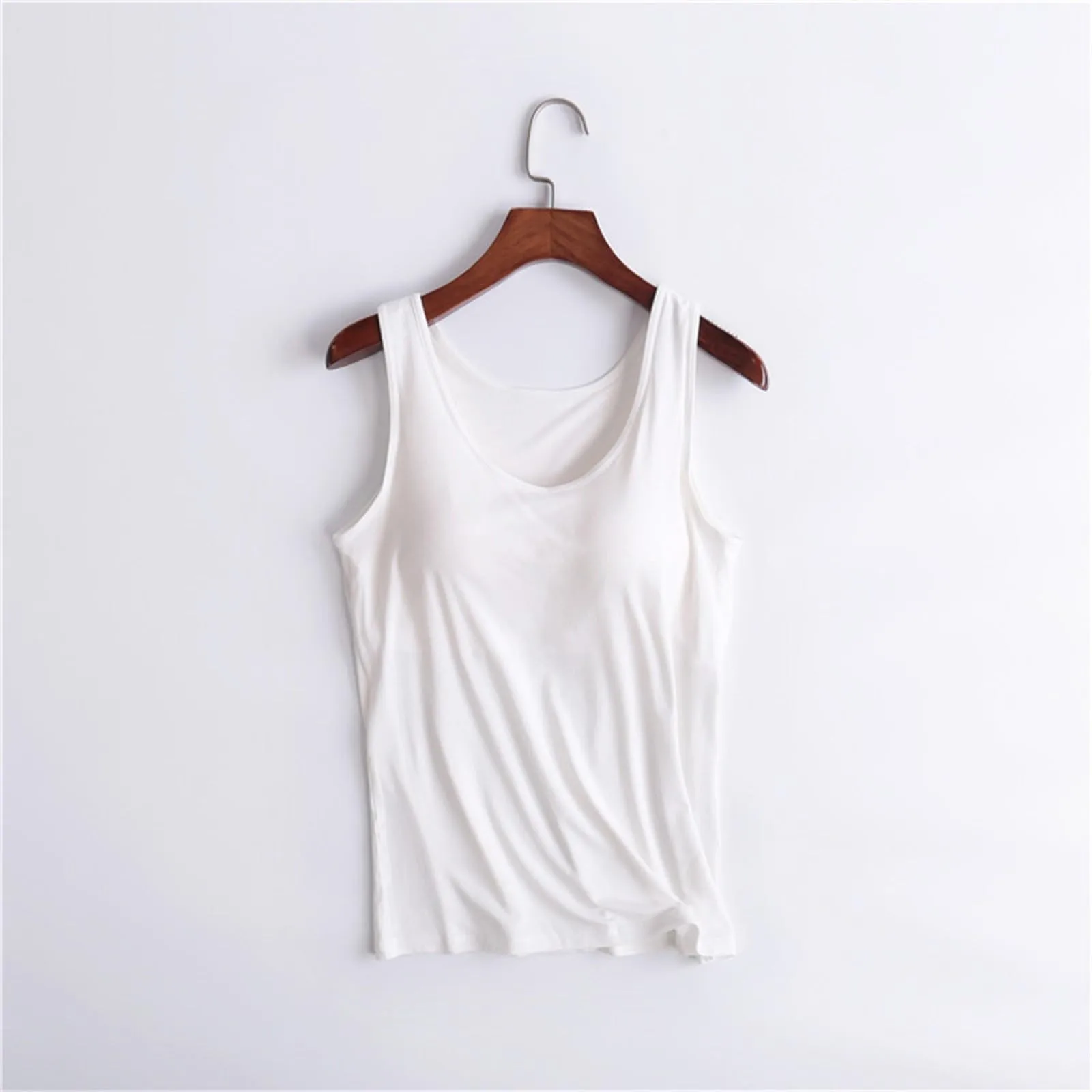 New Women’s Fashion With Padded Tank Top Without Steel Ring Bra Cups One-Piece Underwear Bottoming Shirt