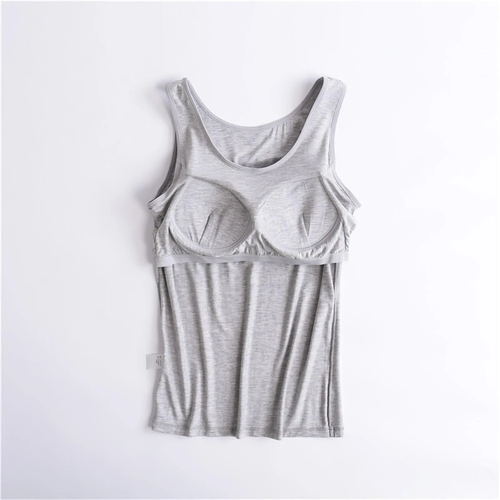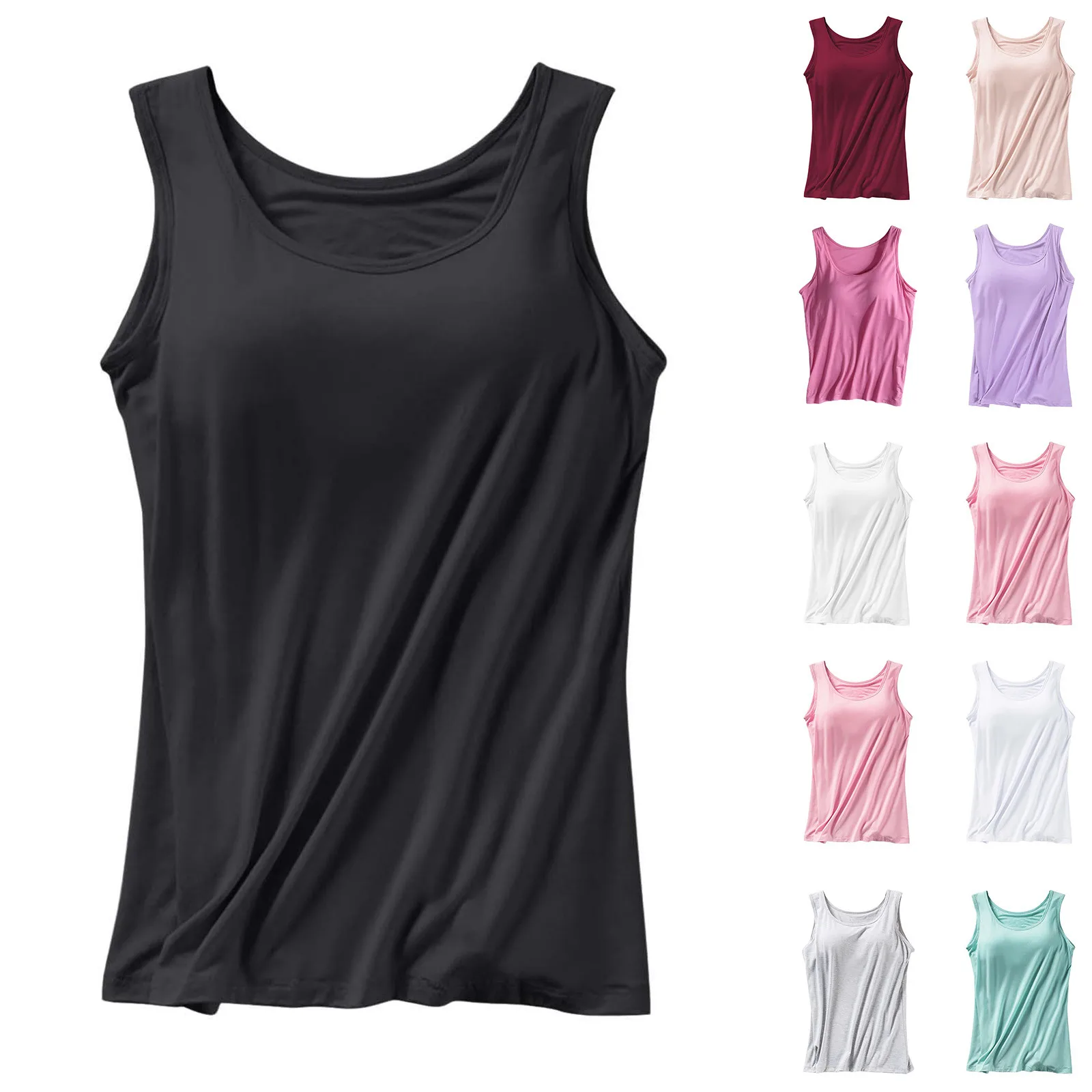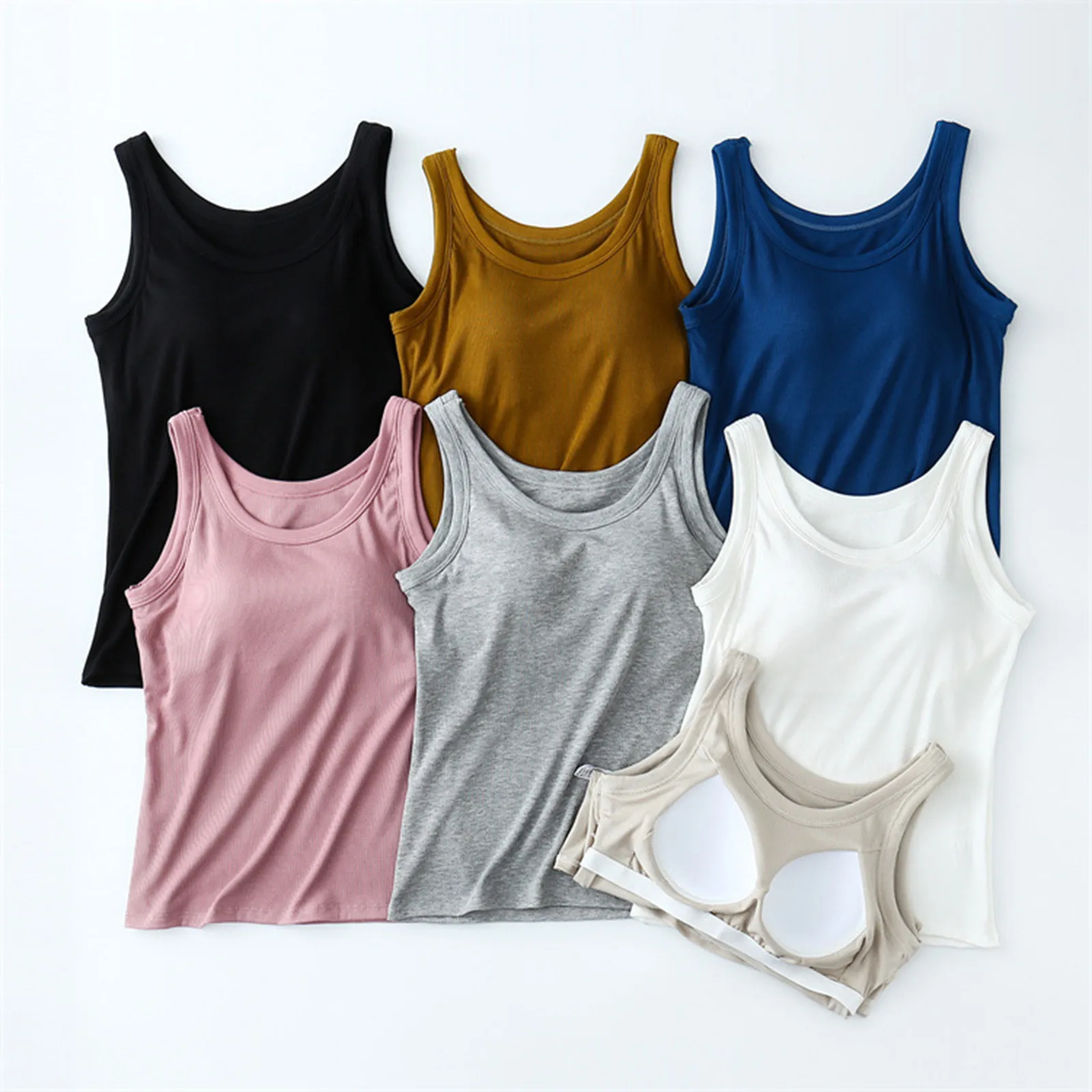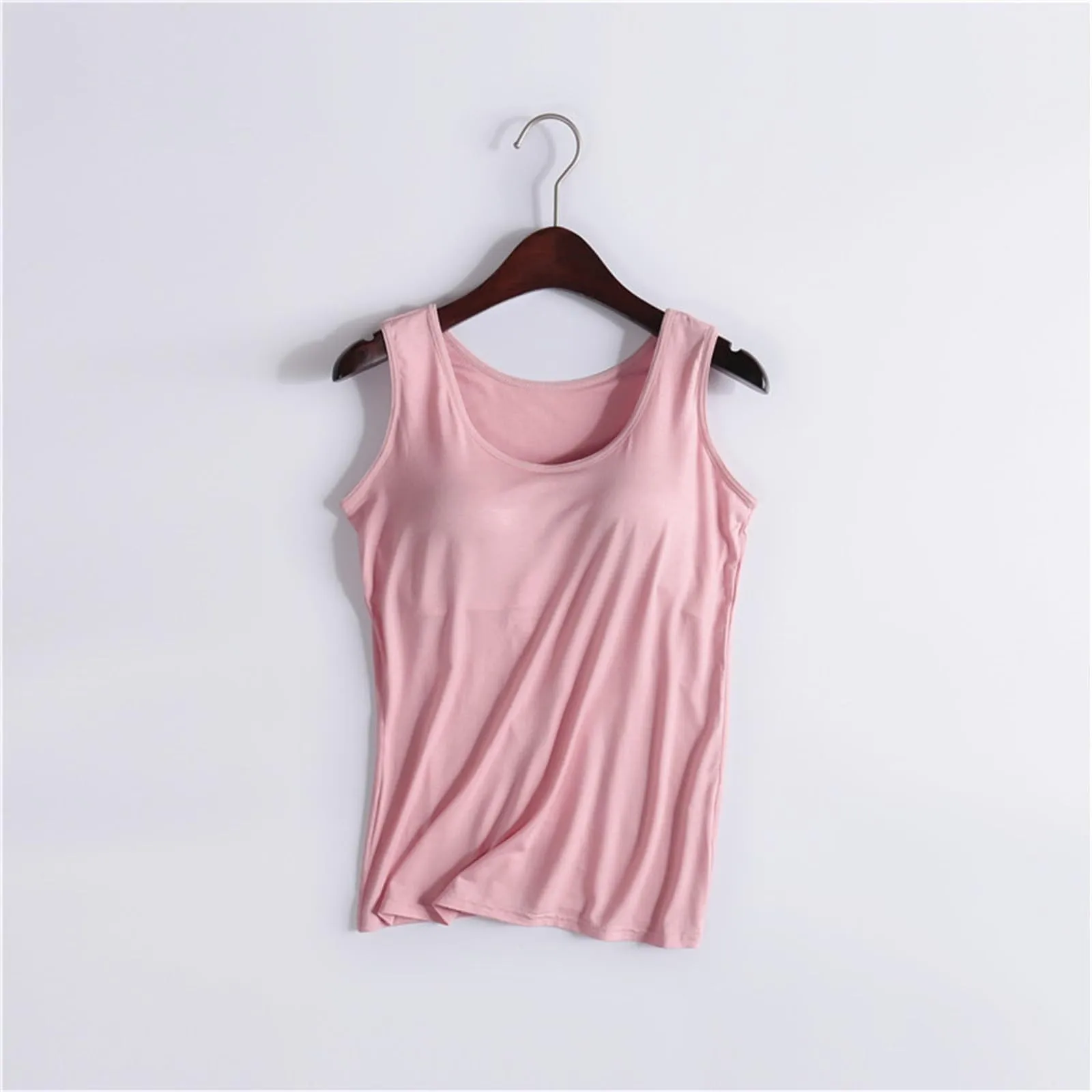 New Women’s Fashion With Padded Tank Top Without Steel Ring Bra Cups One-Piece Underwear Bottoming Shirt