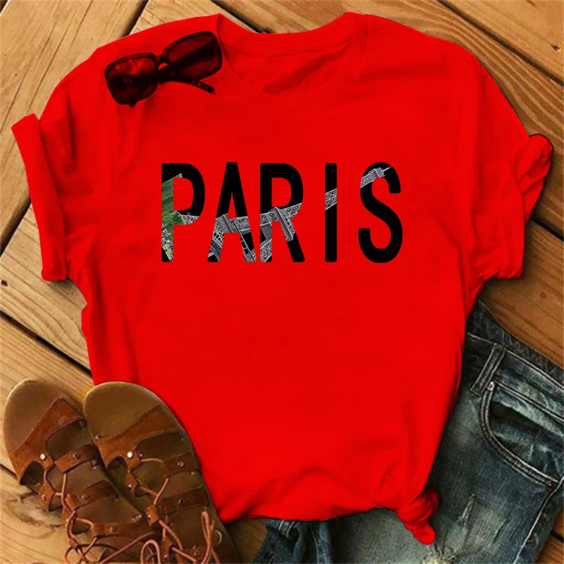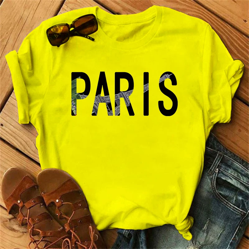 Orange crop Top Women Summer Paris Letters Print Y2k T-shirt Ladies Short Sleeved Luxury Tee Clothing Loose Pure Cotton Soft Top