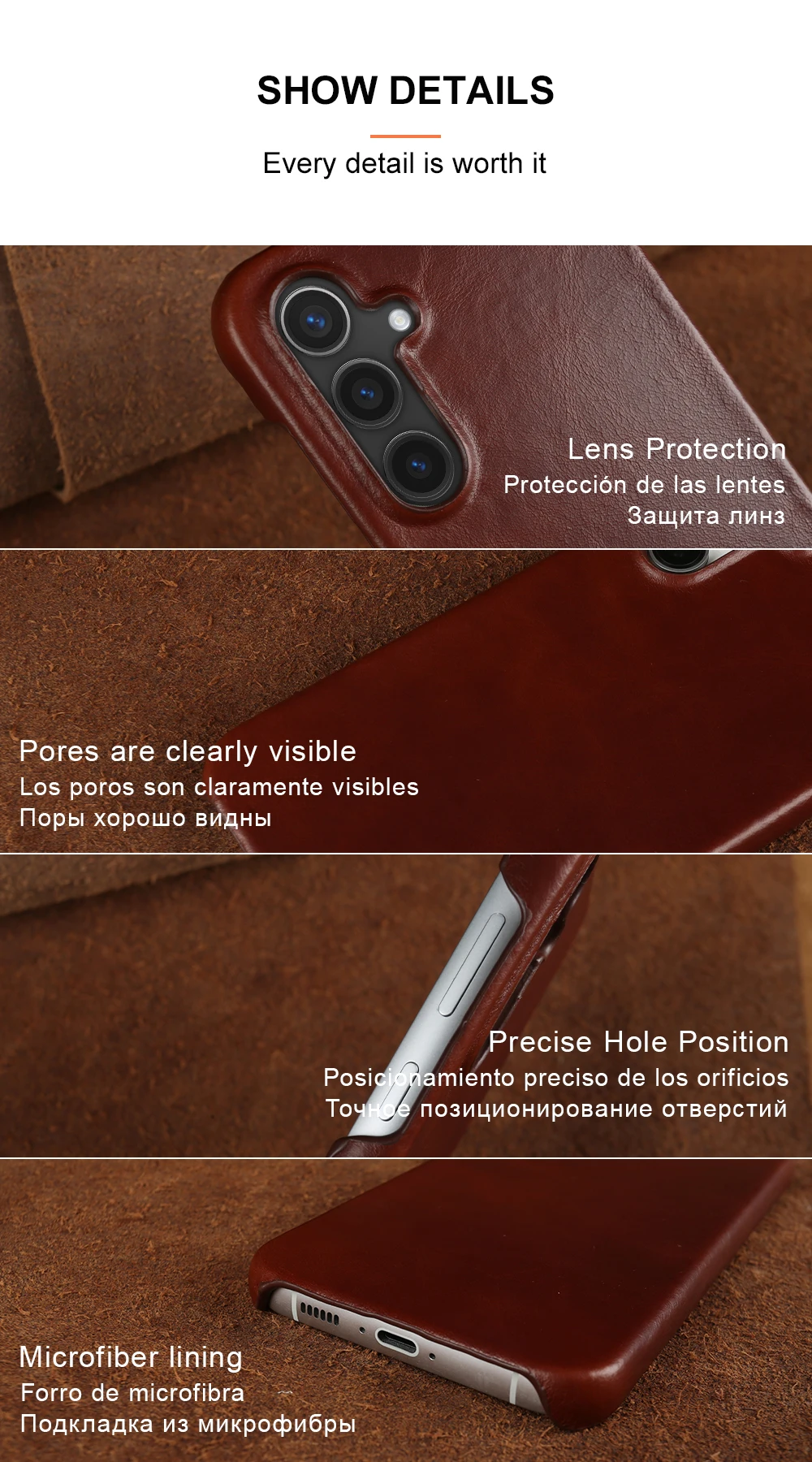 Comfort: Leather feels great in the hand, providing a comfortable and ergonomic experience when holding your phone.