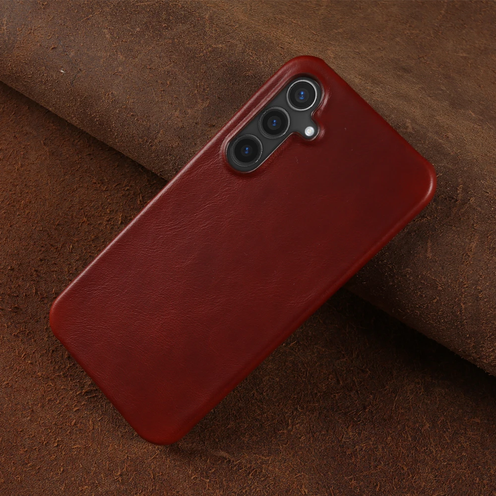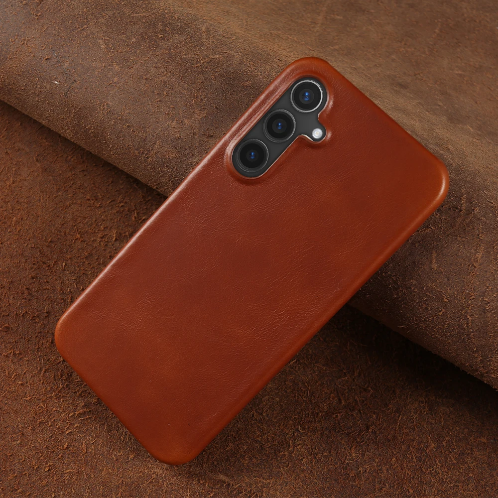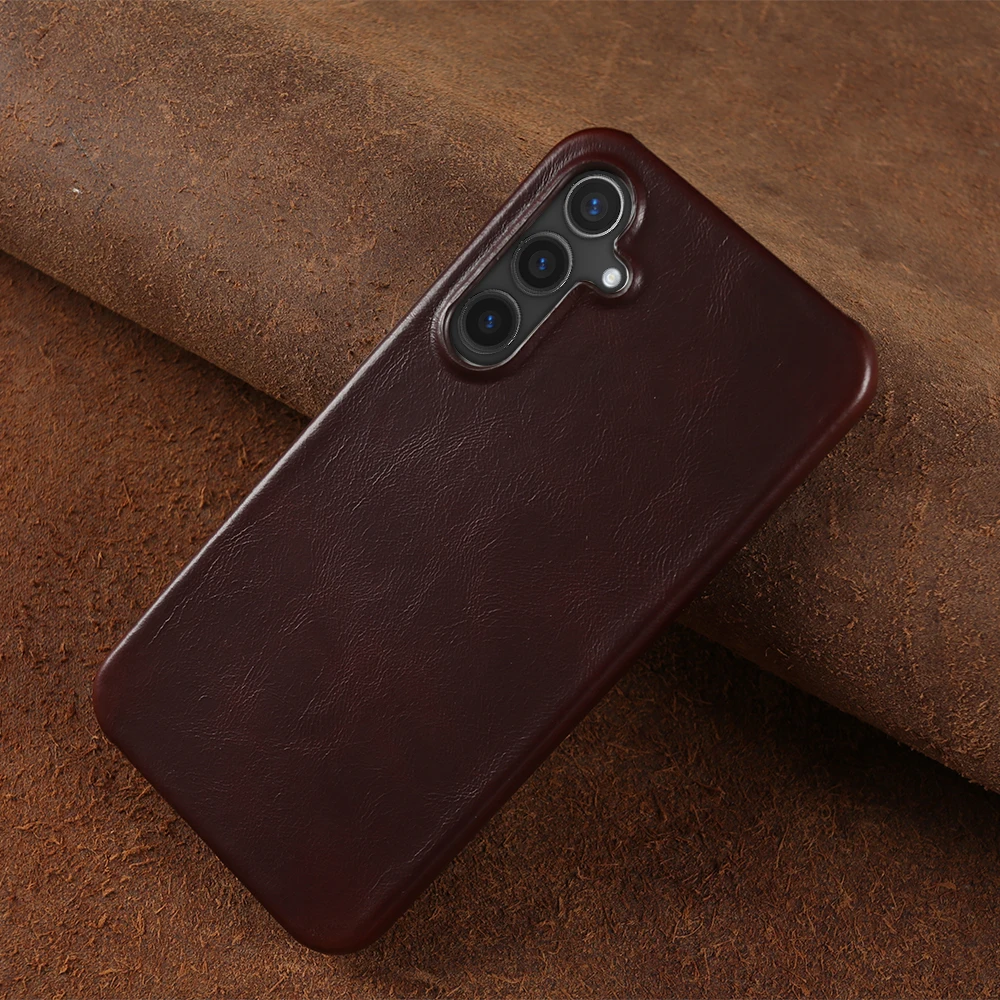 Retro Genuine Leather Case For Samsung Galaxy S24 Ultra S23S20 S20FE S22Plus S21 Aesthetic Oil Wax Patter Phone Shell Back Cover