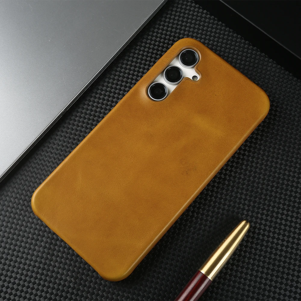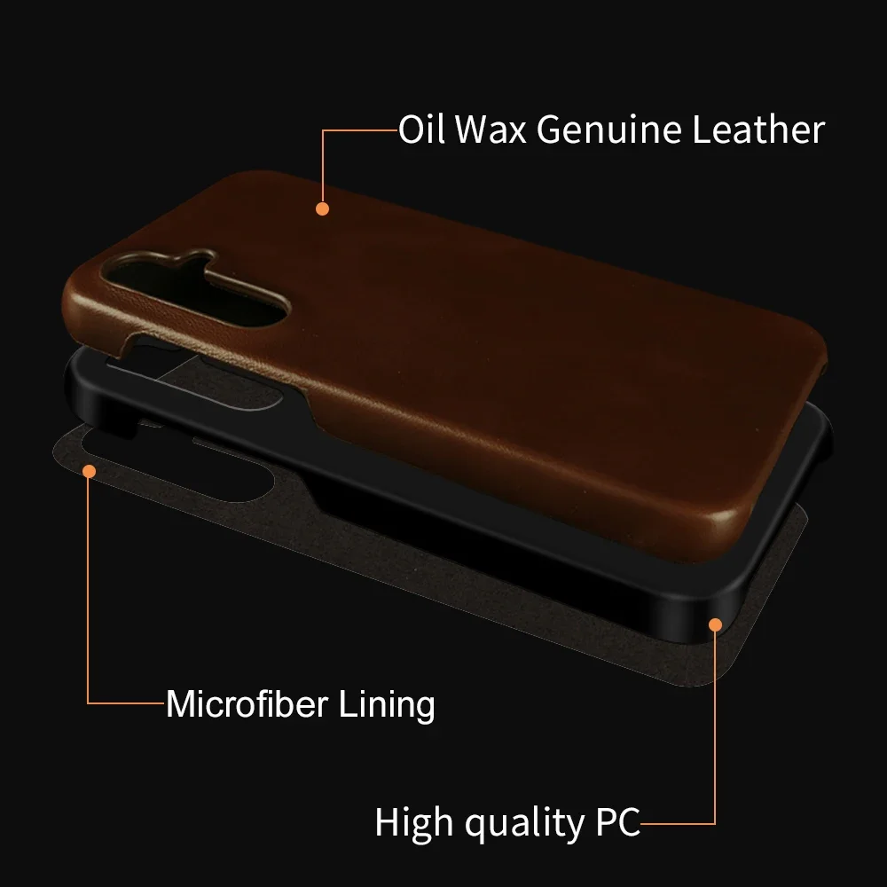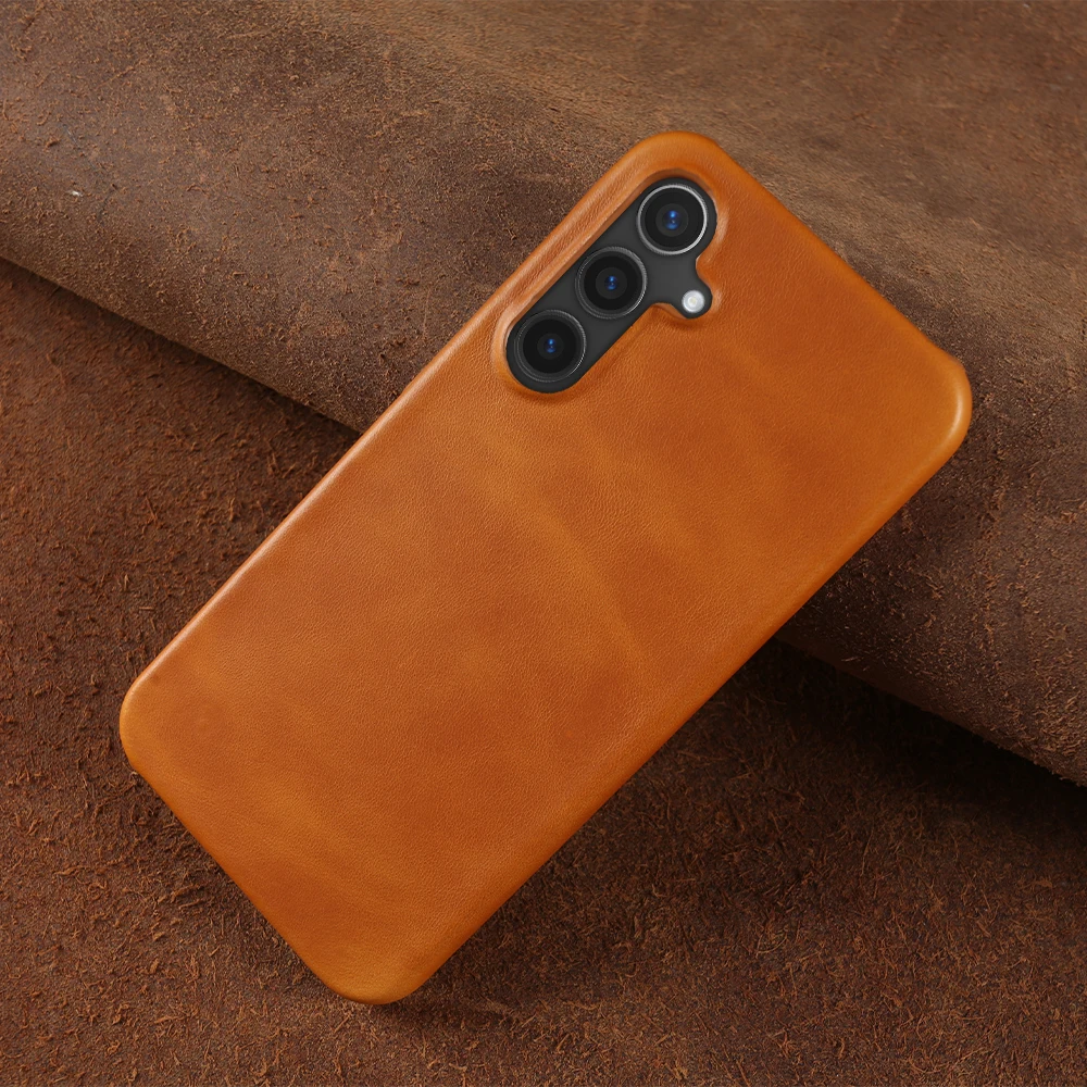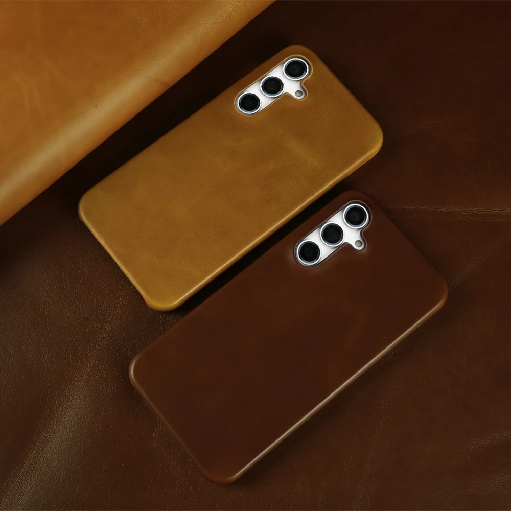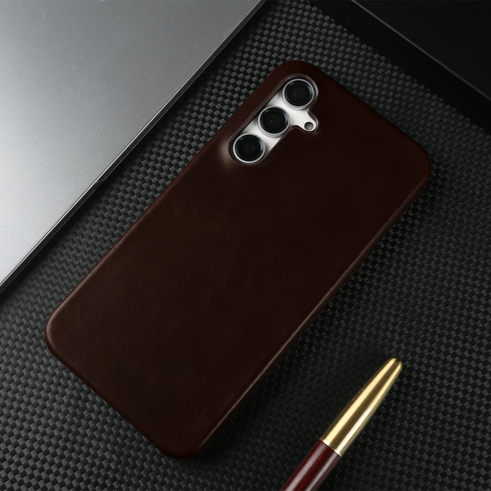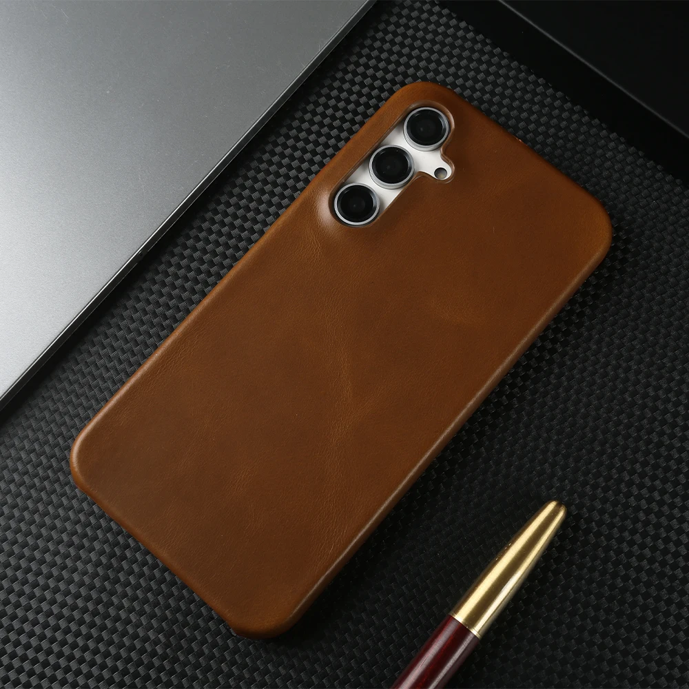 Retro Genuine Leather Case For Samsung Galaxy S24 Ultra S23S20 S20FE S22Plus S21 Aesthetic Oil Wax Patter Phone Shell Back Cover