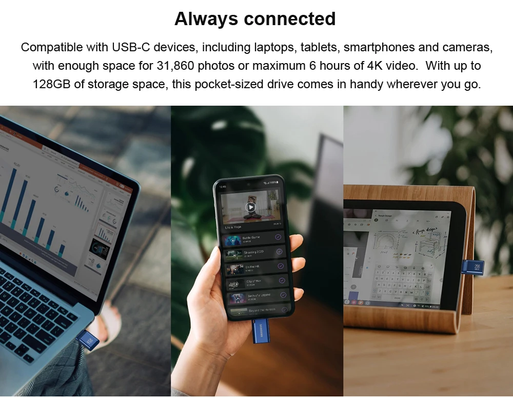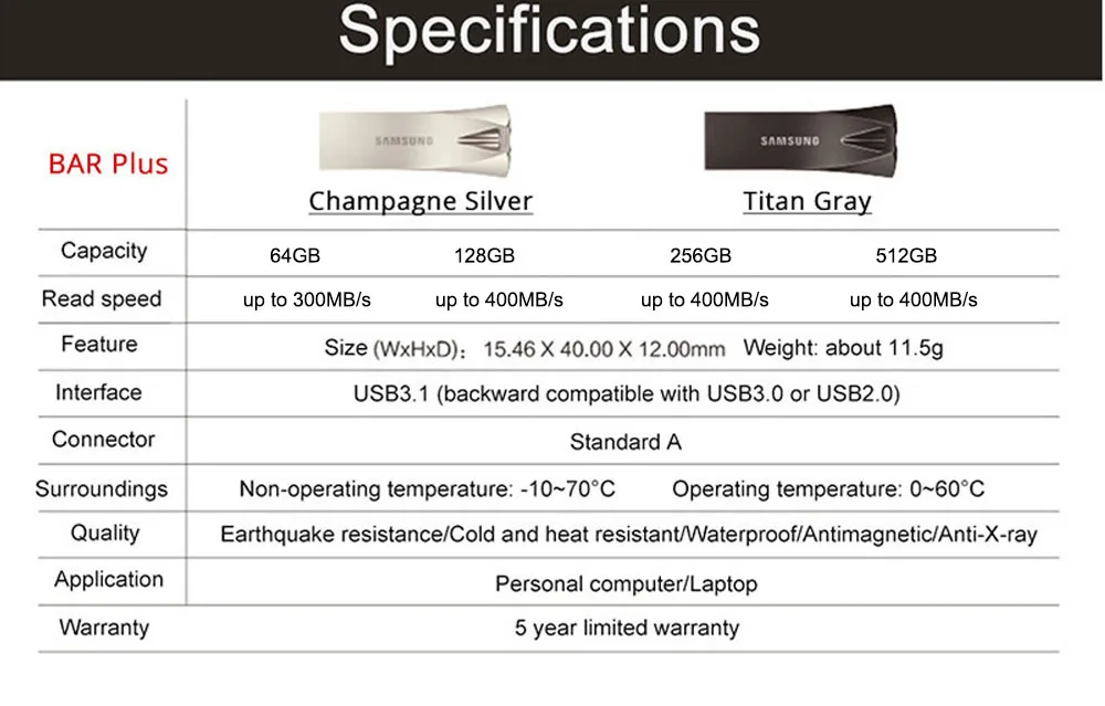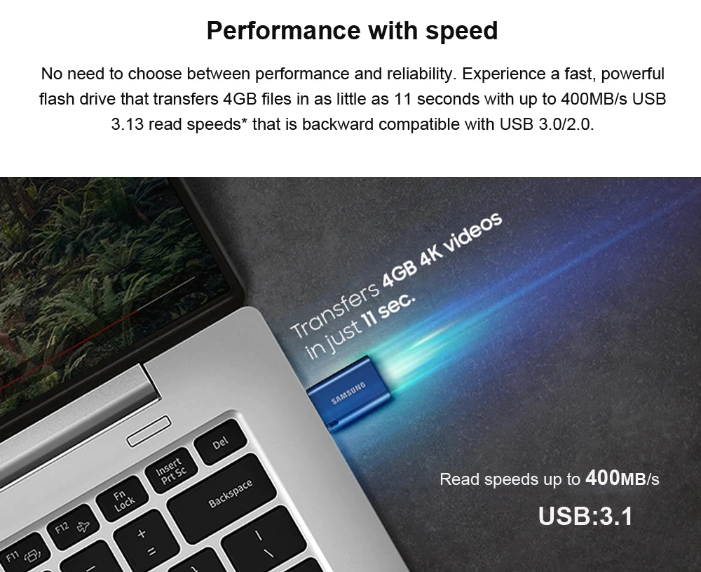 - 128GB/256GB/512GB Speed USB3.1: Up to 400MB/s