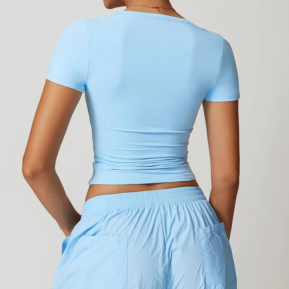 Sexy Yoga Shirts Women Top Quick Dry Running Tops Tights Push Up Workout Gym Clothes Female Short Sleeve Fitness Sports T-Shirts
