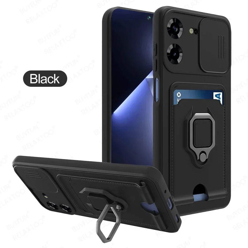 Sliding Camera Protection Case for Tecno Pova 5 6 Pro Camon 30 Spark 20 10 Pro Plus Vehicle Magnetic Bracket Card Wallet Shell
