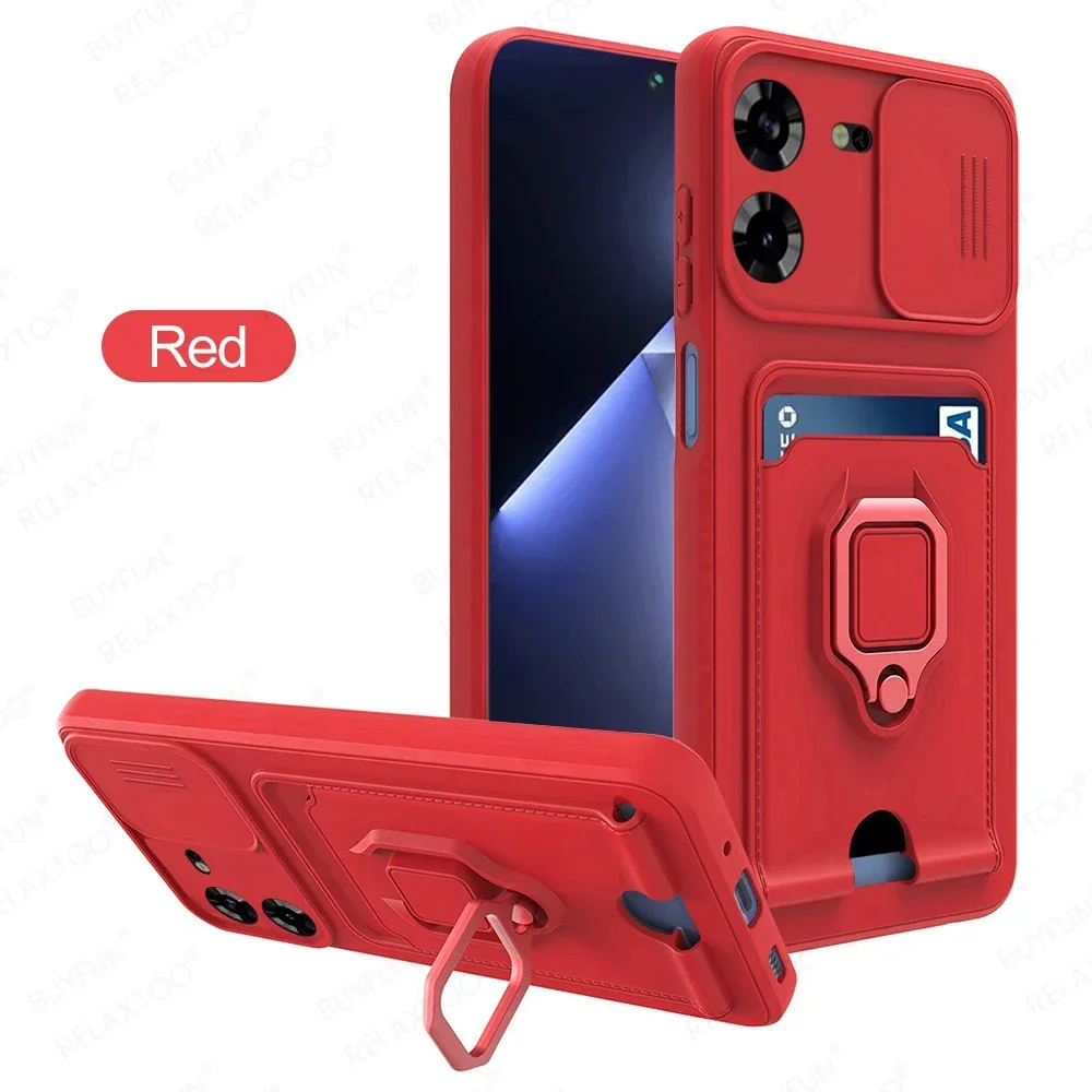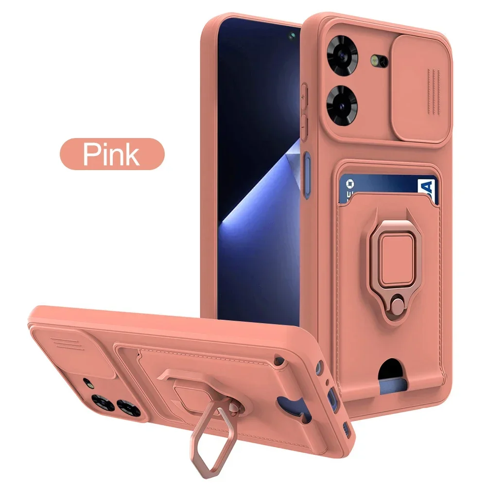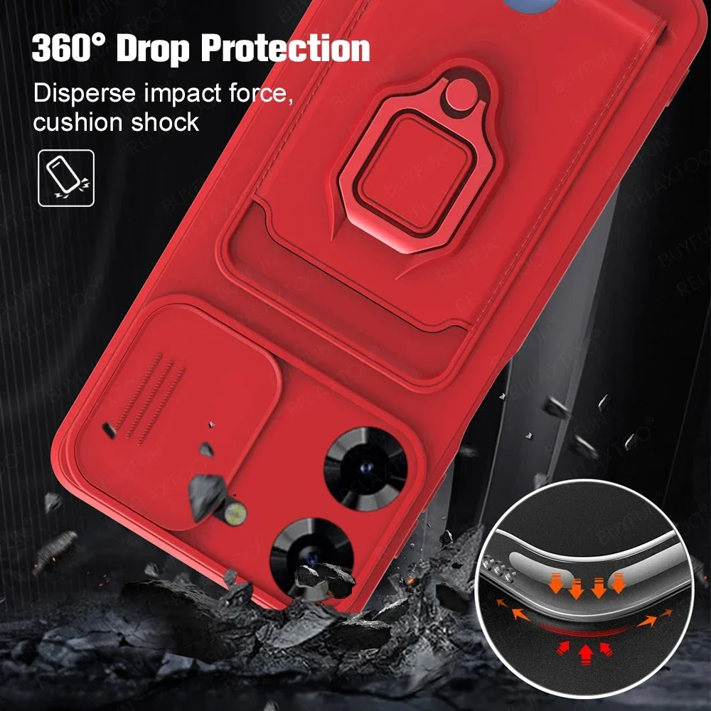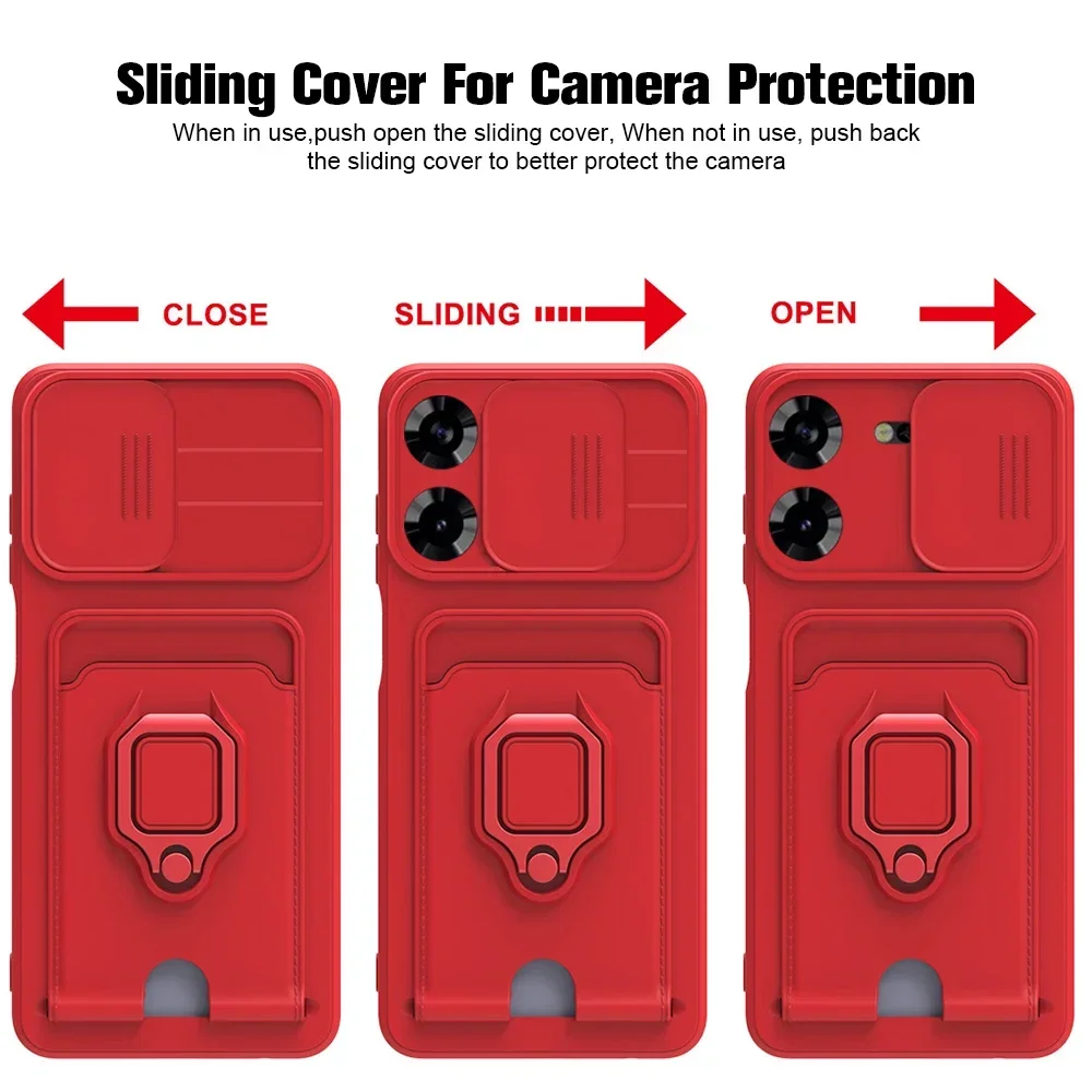 Sliding Camera Protection Case for Tecno Pova 5 6 Pro Camon 30 Spark 20 10 Pro Plus Vehicle Magnetic Bracket Card Wallet Shell