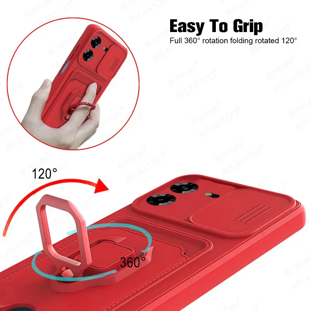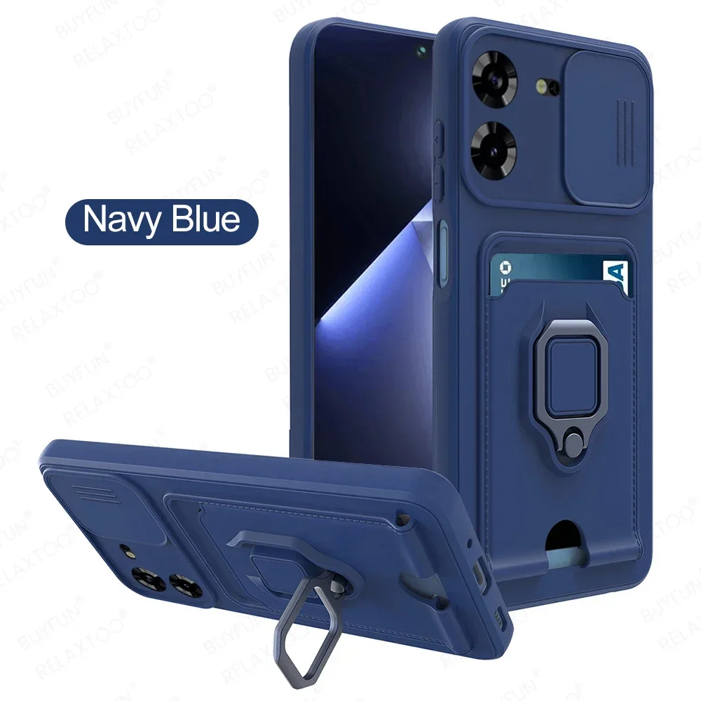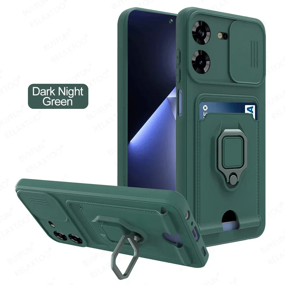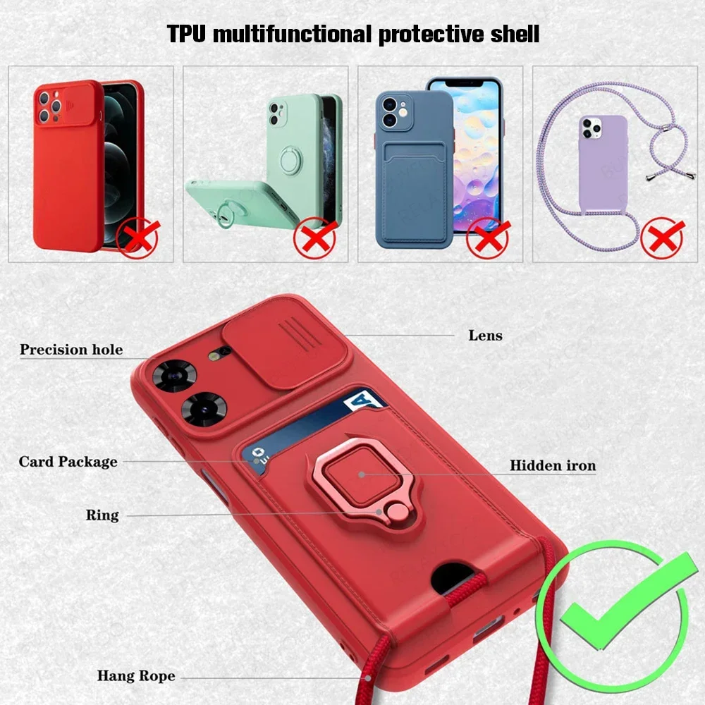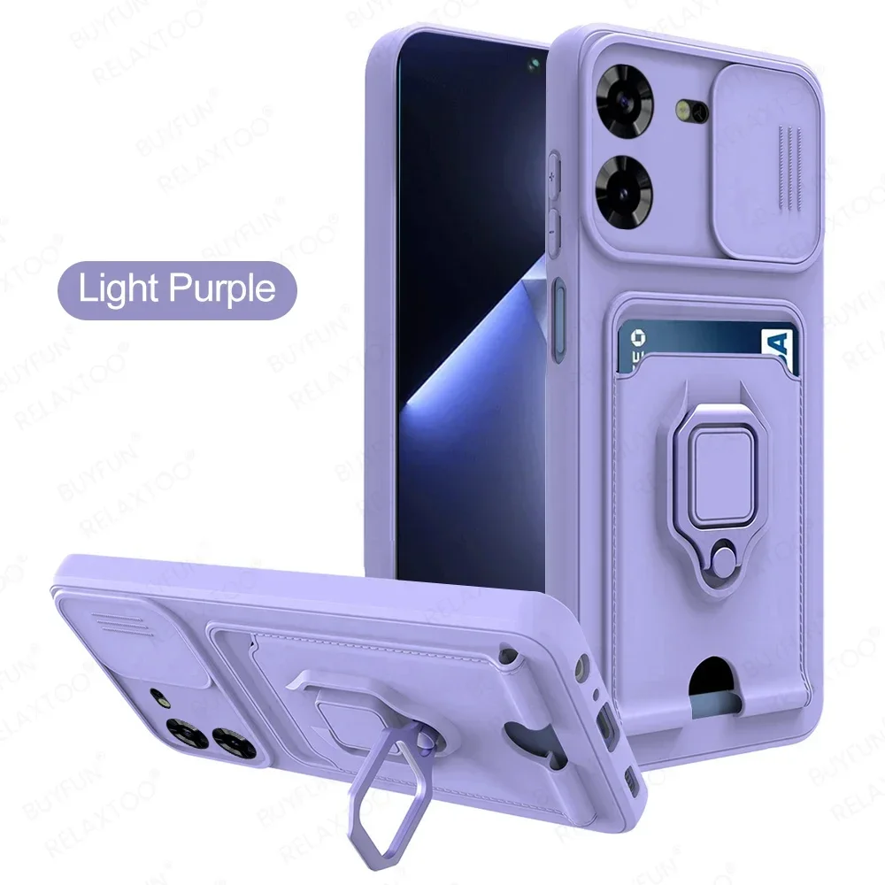 Sliding Camera Protection Case for Tecno Pova 5 6 Pro Camon 30 Spark 20 10 Pro Plus Vehicle Magnetic Bracket Card Wallet Shell