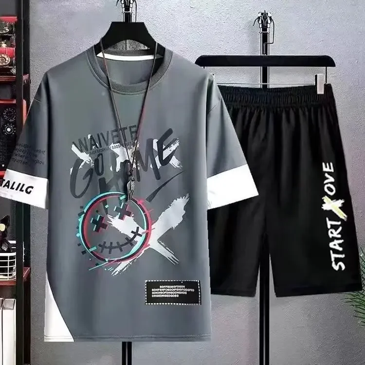 Summer Men’s Short Sleeve 2-piece Set Korean Style Casual New Graffiti Unique Fashion Street Trendy Five Minute Sleeve
