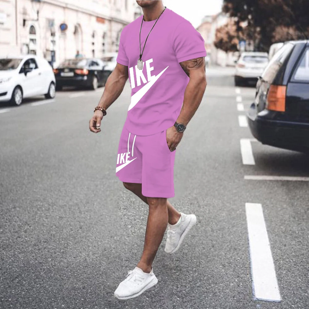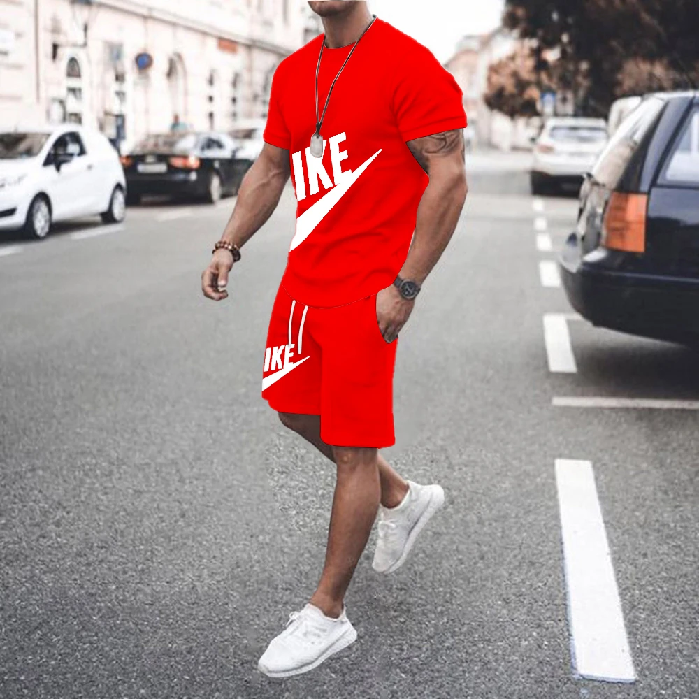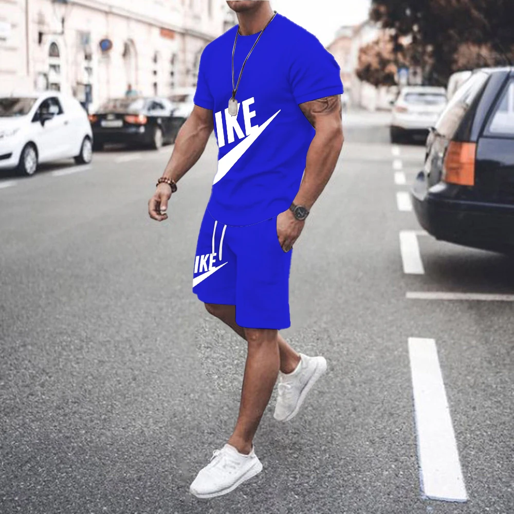 summer outdoor sports set, men’s short sleeved T-shirt shorts, casual and fashionable two-piece set, sweat absorbing and