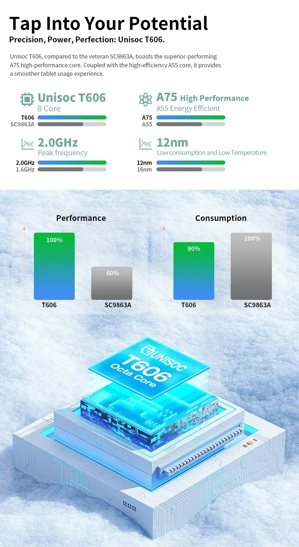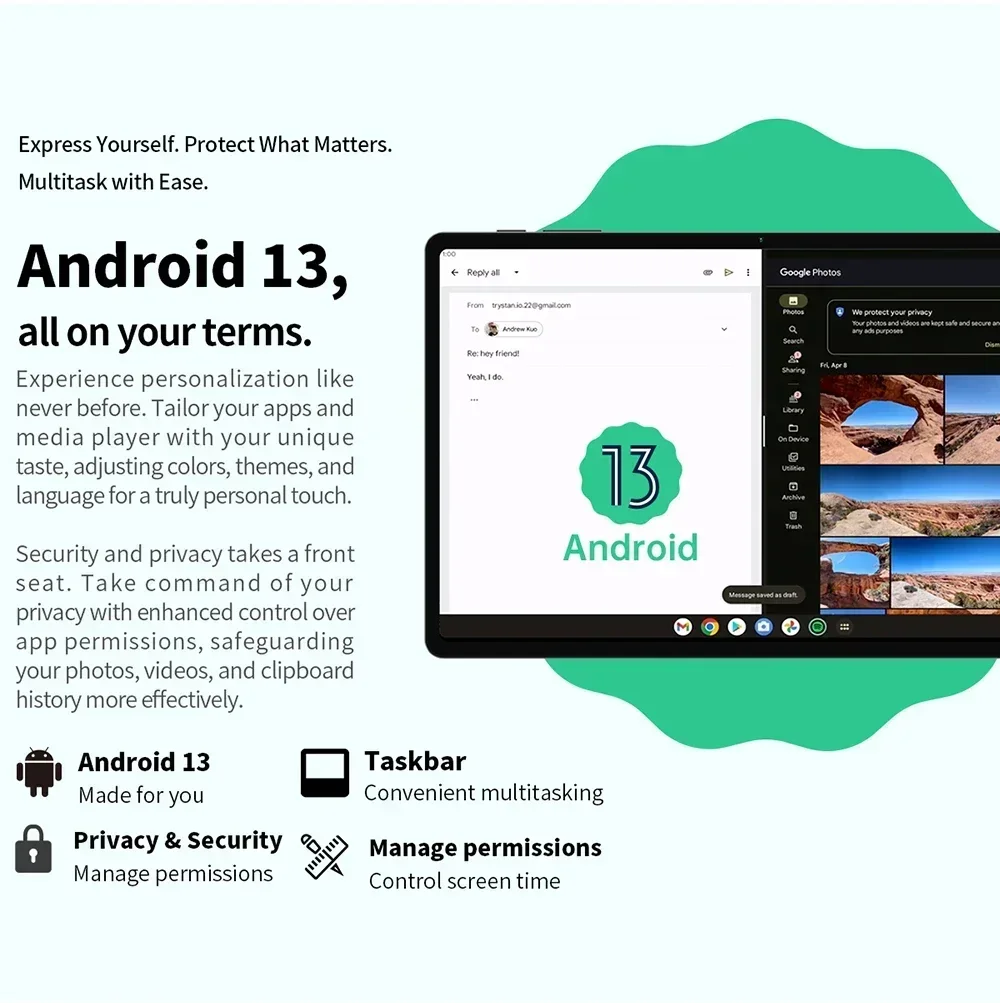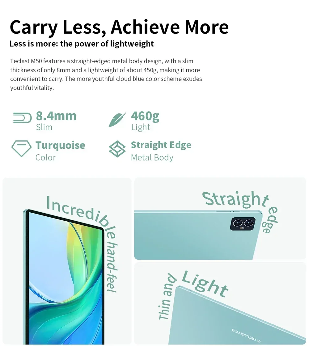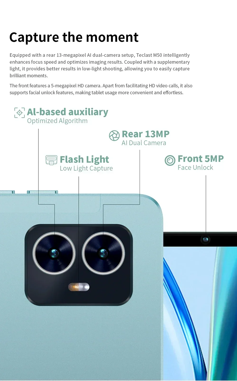 Teclast M50 Tablet Android 13 T606 6GB RAM 128GB ROM 10.1″ Tablets PC Incell Fully Laminated VoLTE Dual 4G 13MP AI Camera 450g