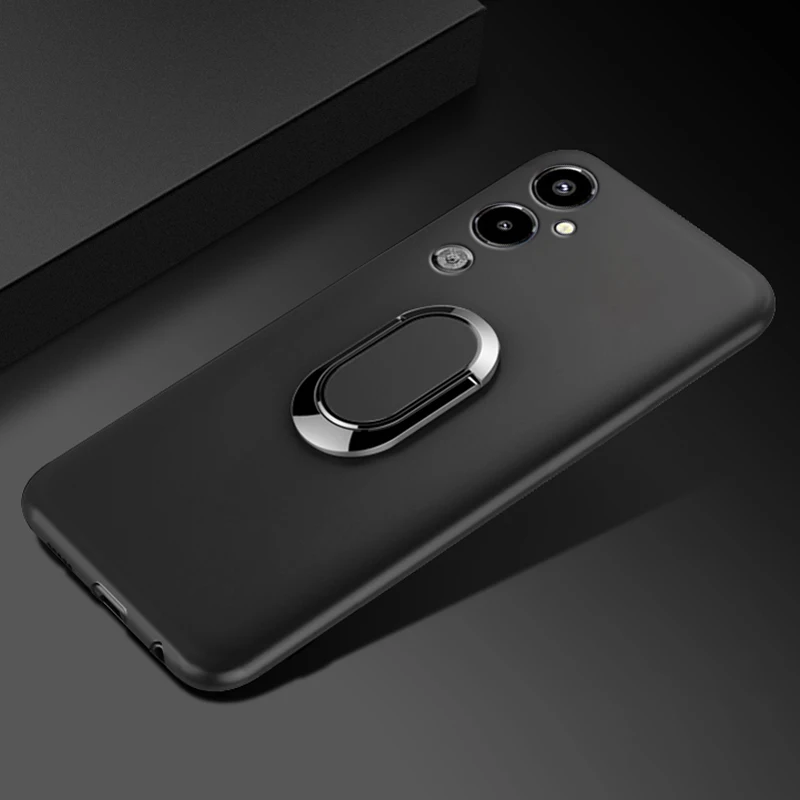 Tecno Pova 4 Case Luxury 6.82 Inch Soft Black Silicone Magnetic Car Holder Ring Phone Cover for Tecno Pova 4